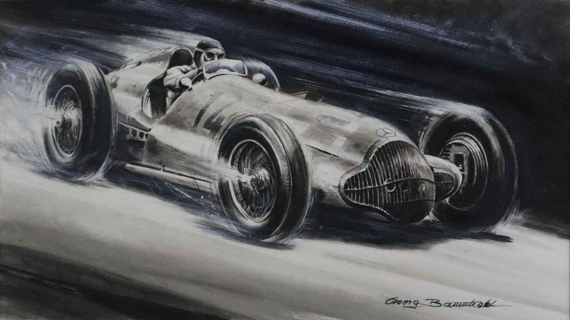 4220706. BAUMHAKL, GEORG. - “Hermann Lang, Silberpfeil W125", mixed media on paper.