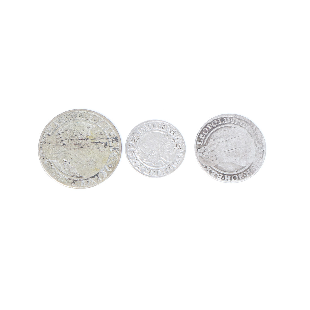 4222534. THREE AUSTRIA 17TH CENTURY COINS.