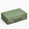 Original bag with green upholstery and leather details. Tableware parts in soft white urea plastic with glass and metal details, consisting of: