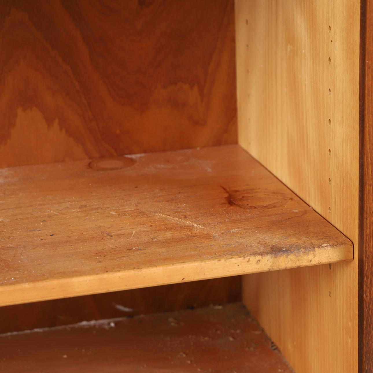 Normal wear and tear, veneer damage, stains, dirt residue, marks, doors loose.