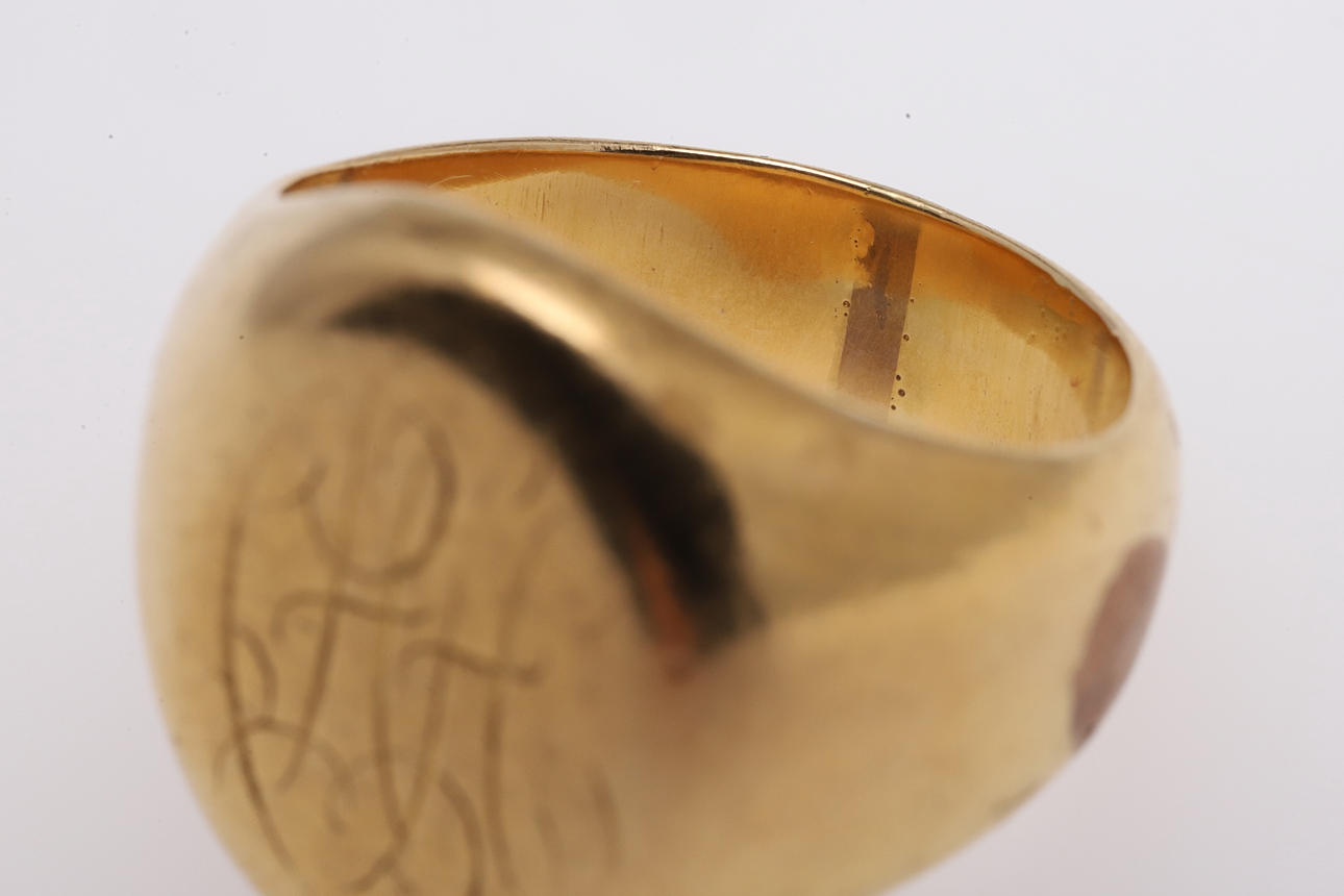 the bezel engraved with initials, 15.9 grams. Size K 1/2.