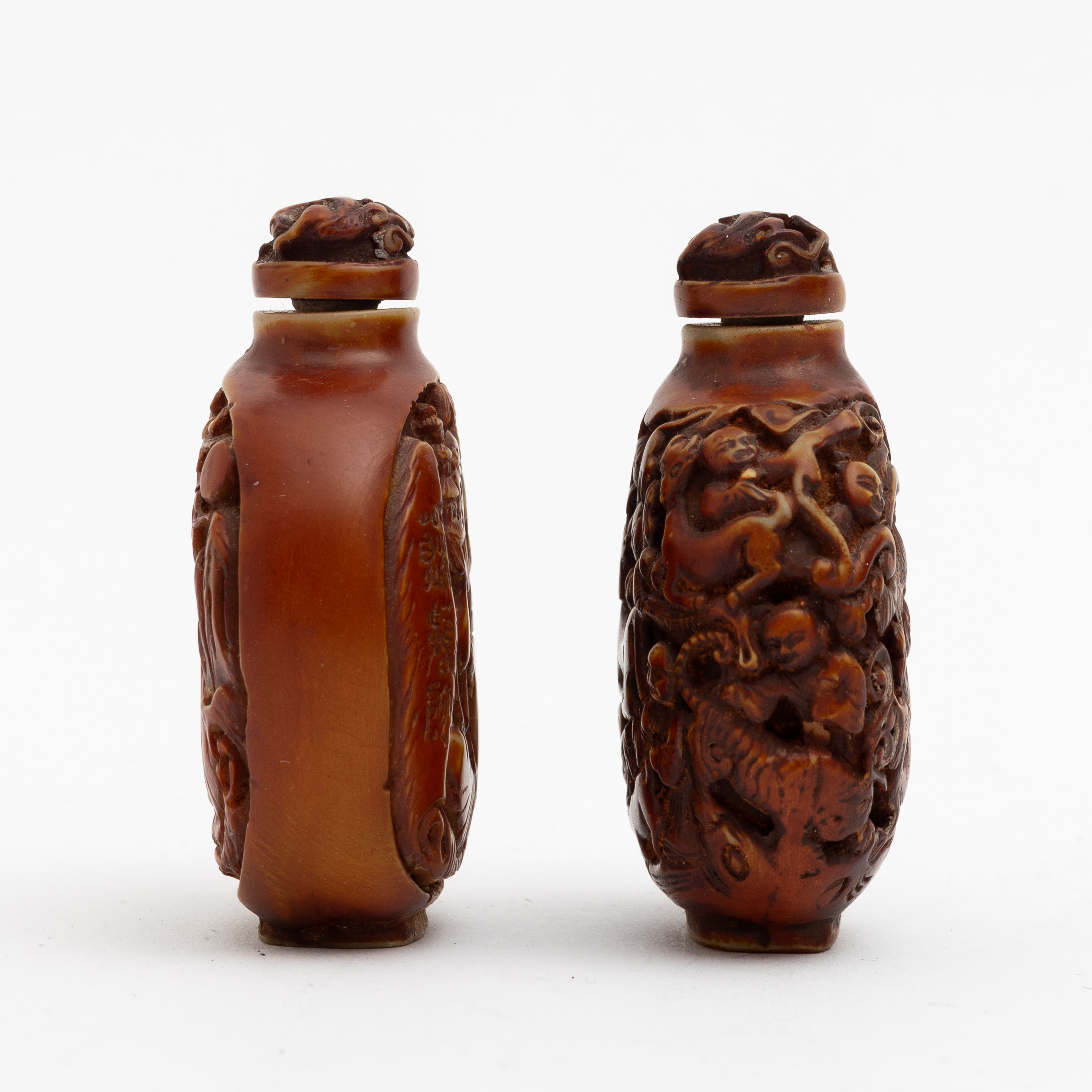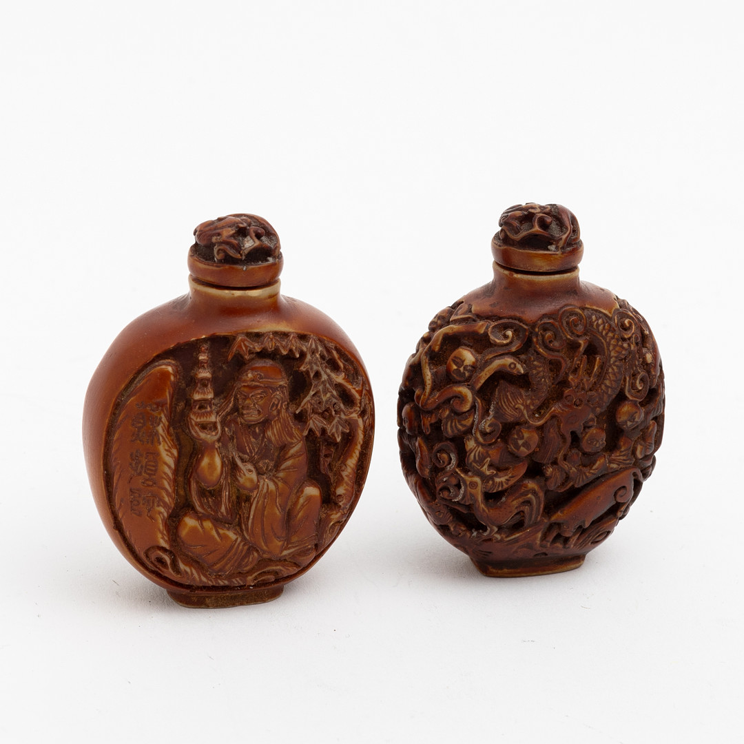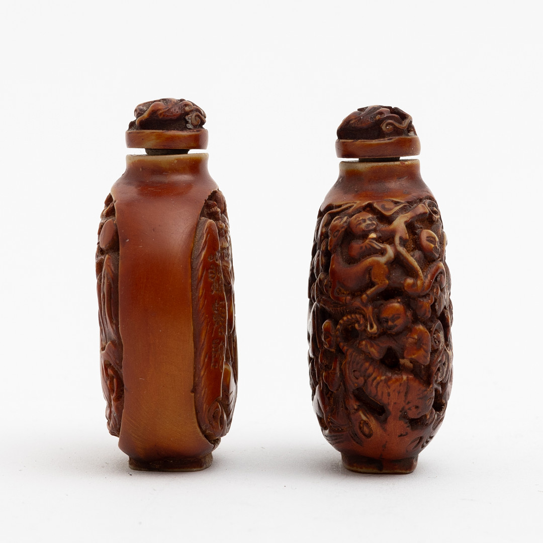 4224643. Two Chinese bone snuff bottles, 20th century.