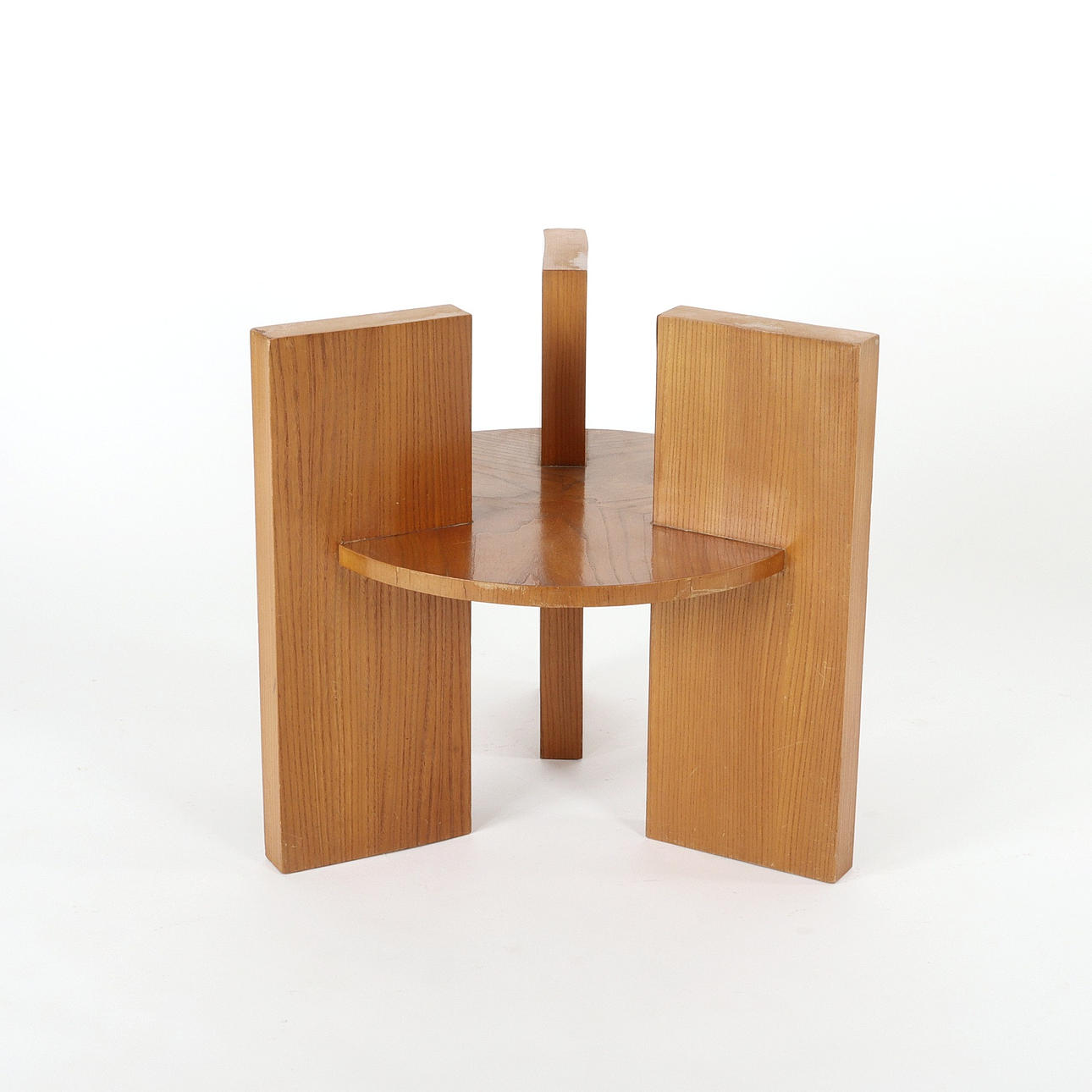 Undercarriage shelf with veneer damage on the edge.