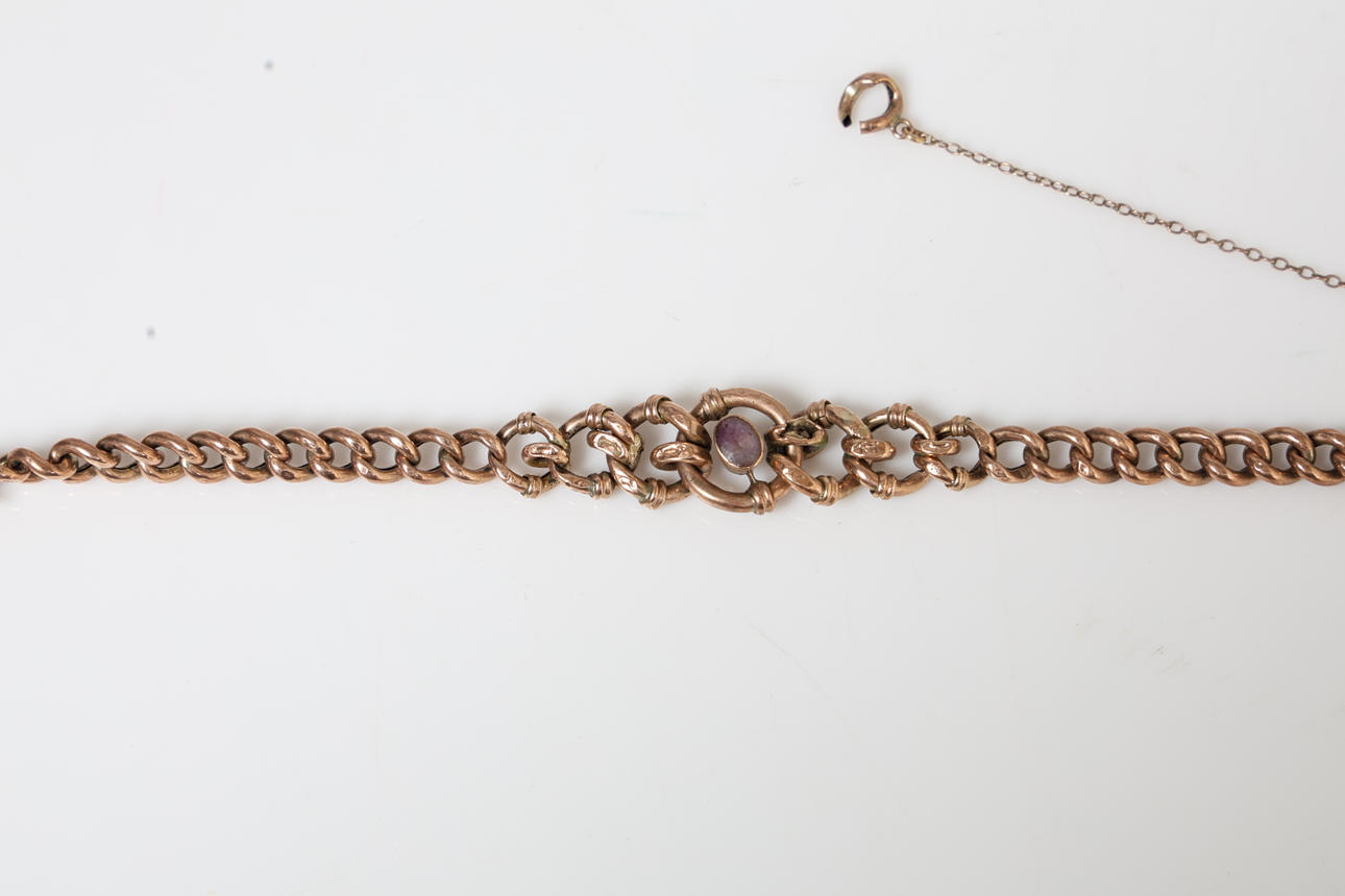 4225818. A YELLOW METAL AND BLUE JOHN BRACELET.