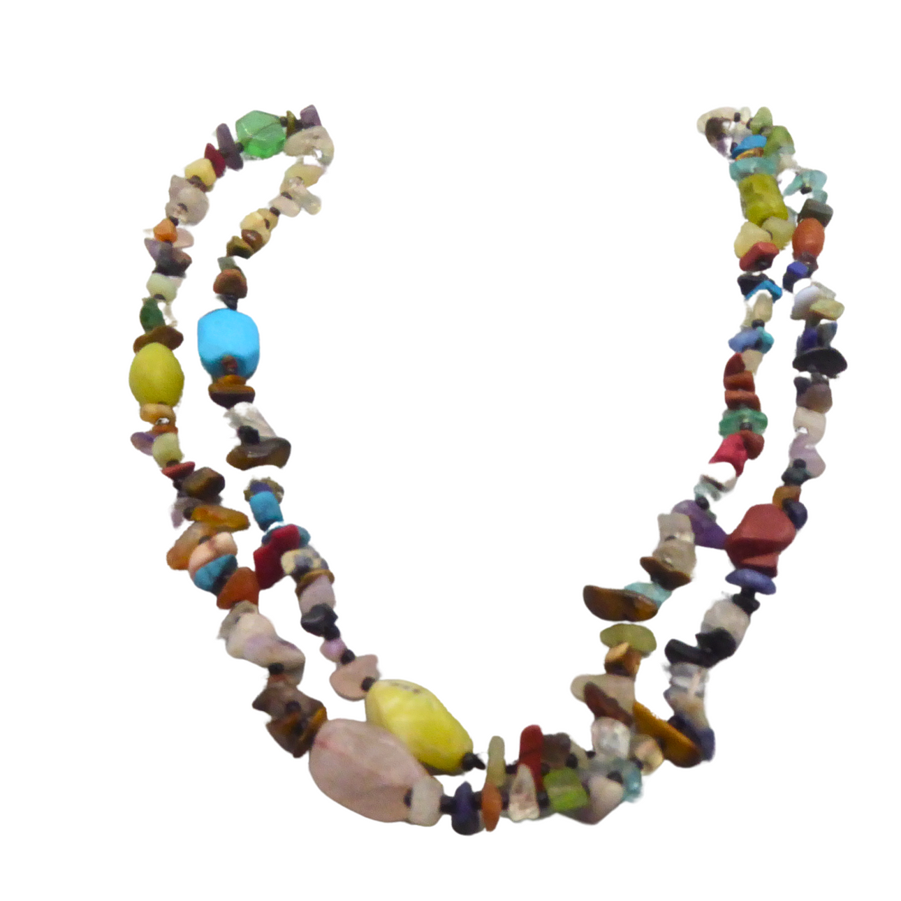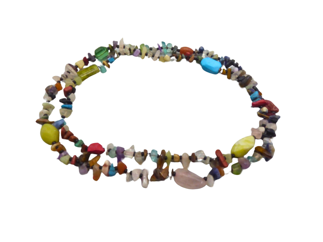 Endless necklace with various natural stones rose quartz, sodalite, amethyst, tiger eye, turquoise, landscape jasper, gold flow