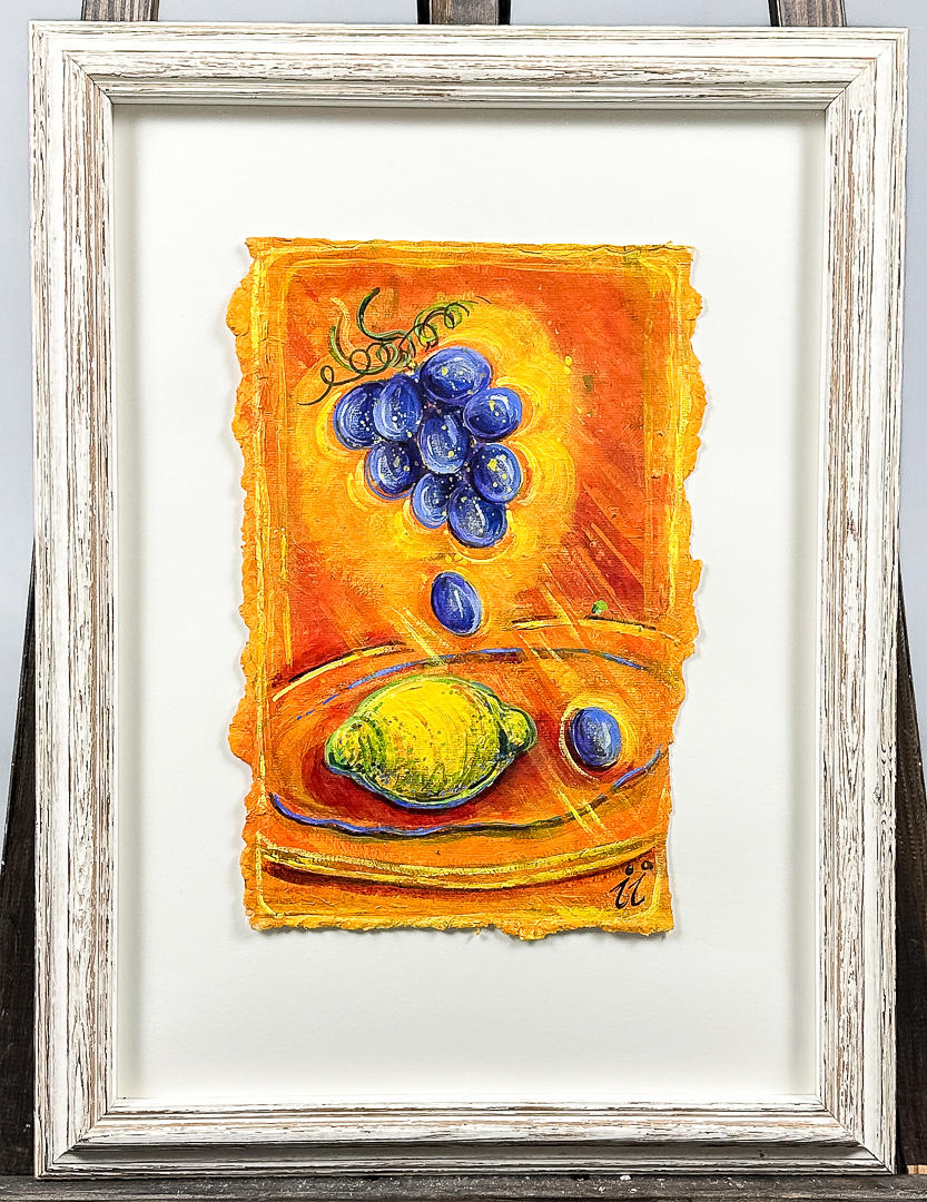 Composition with saucers and fruits.