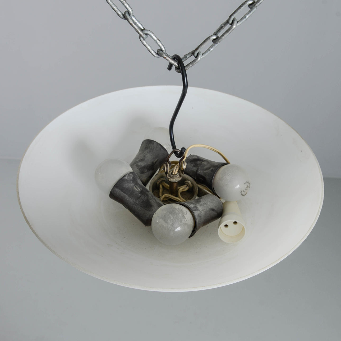 With four light points, hook underneath. Diameter about 35 cm.