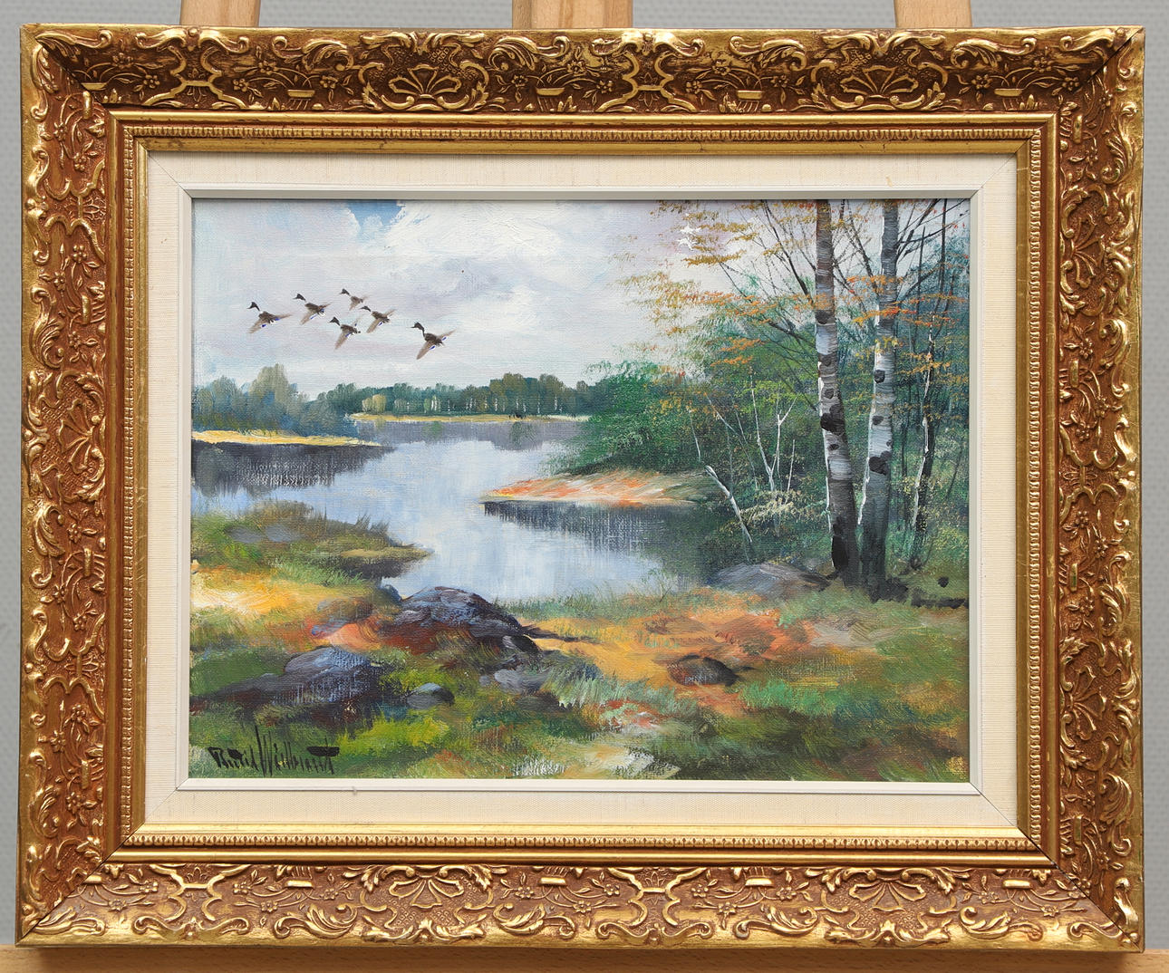 BERTIL WIDBRANDT. Oil on canvas, flying ducks, signed.