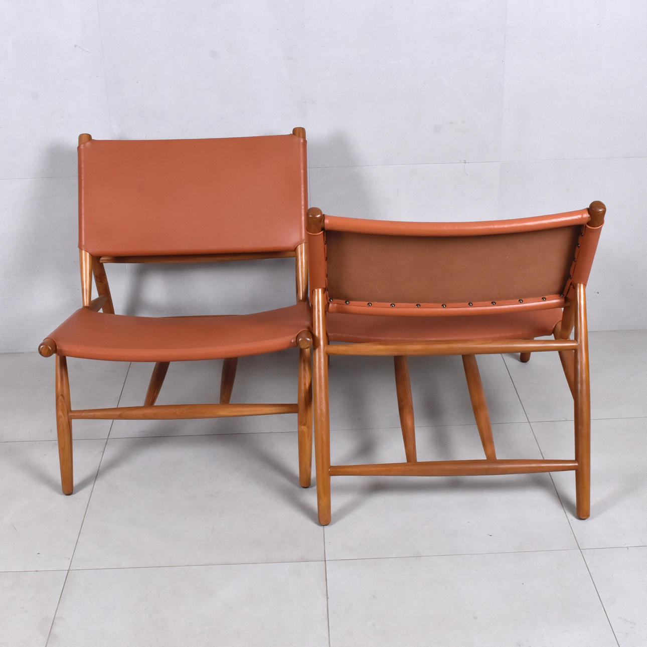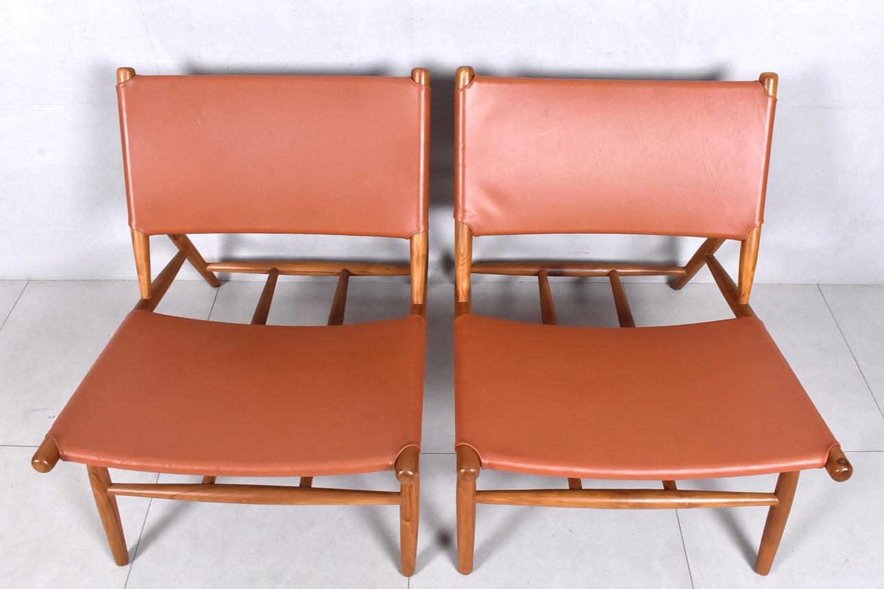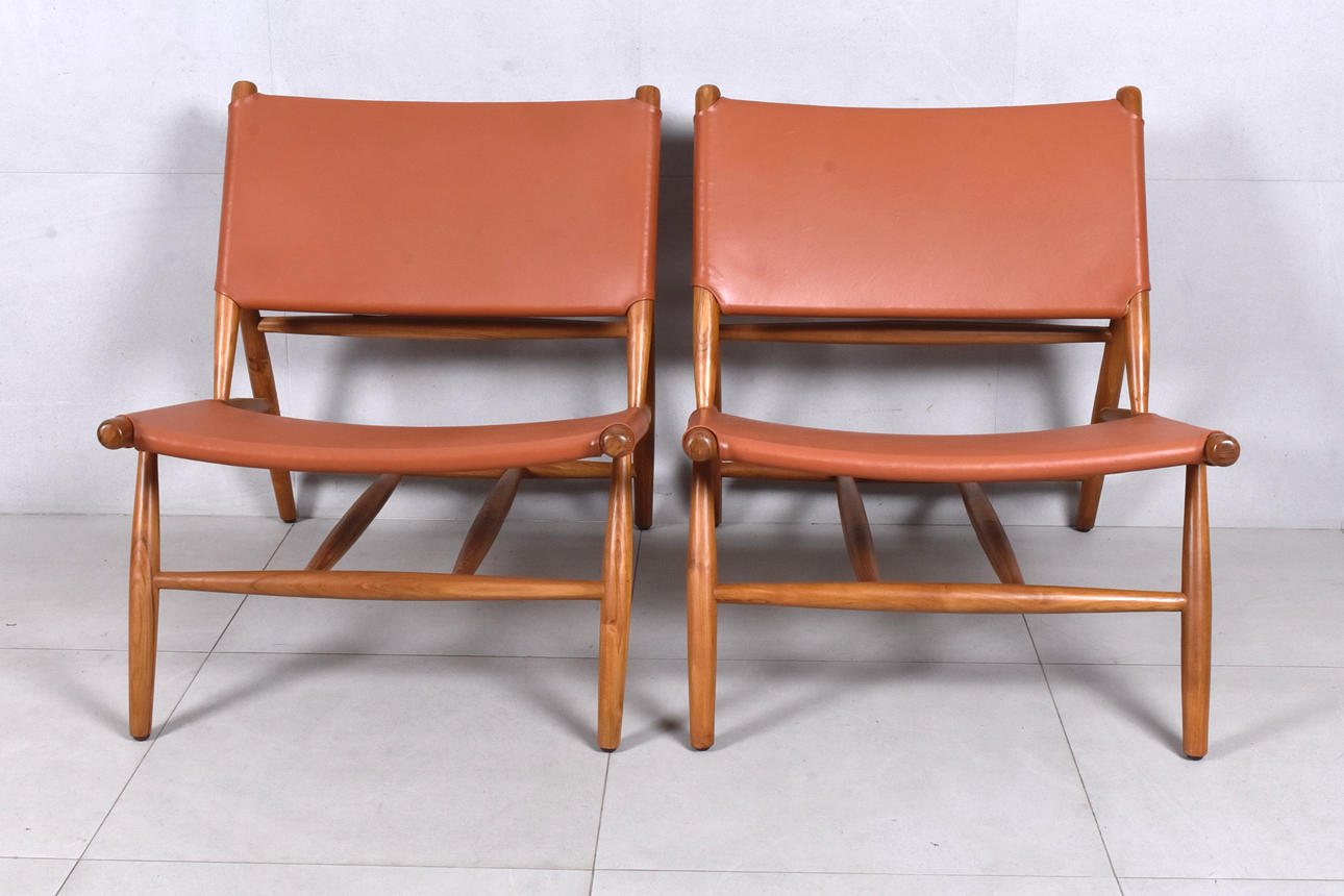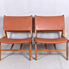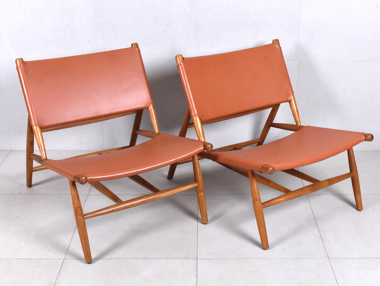 LOUNGE CHAIRS, teak, leather, contemporary.