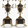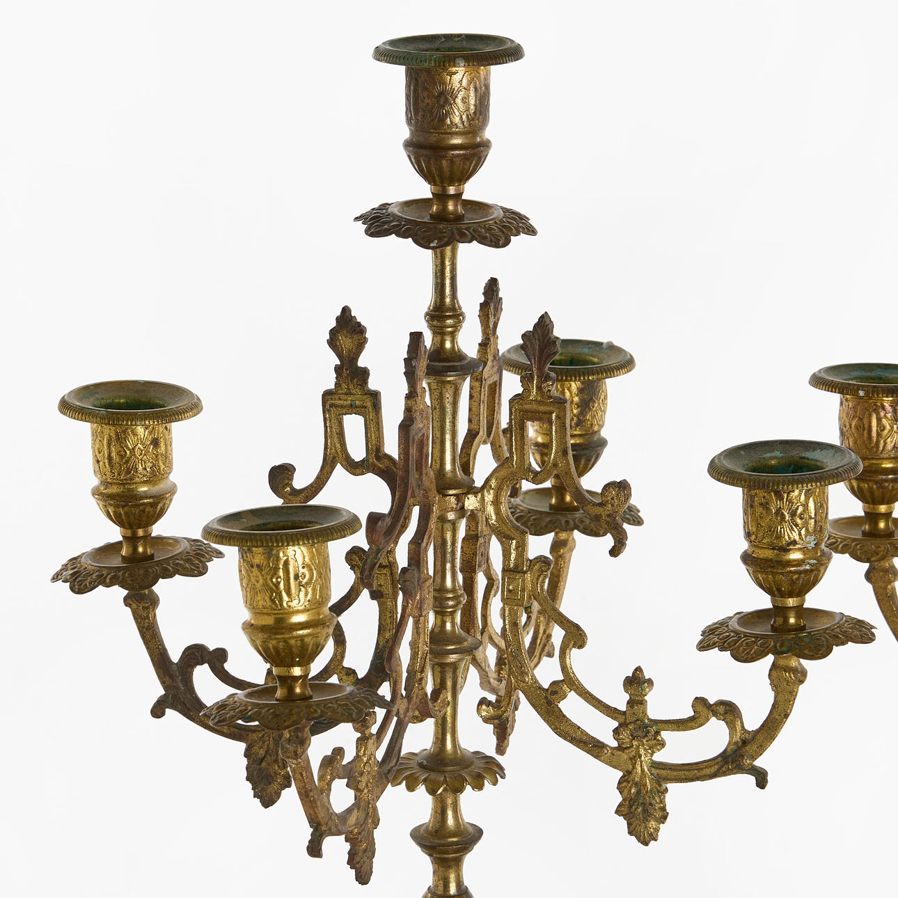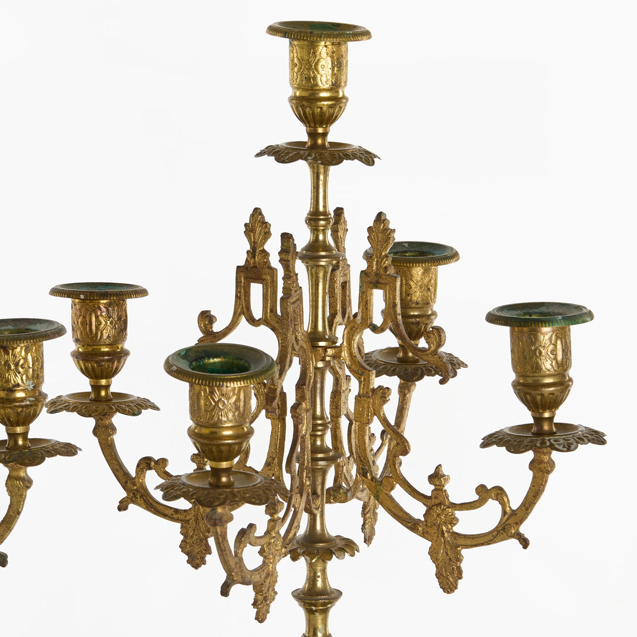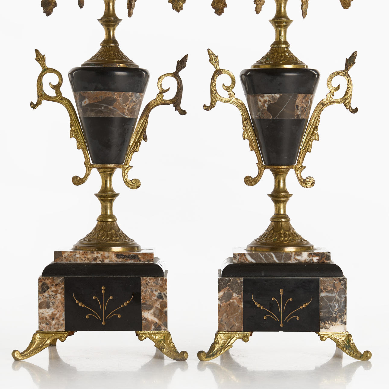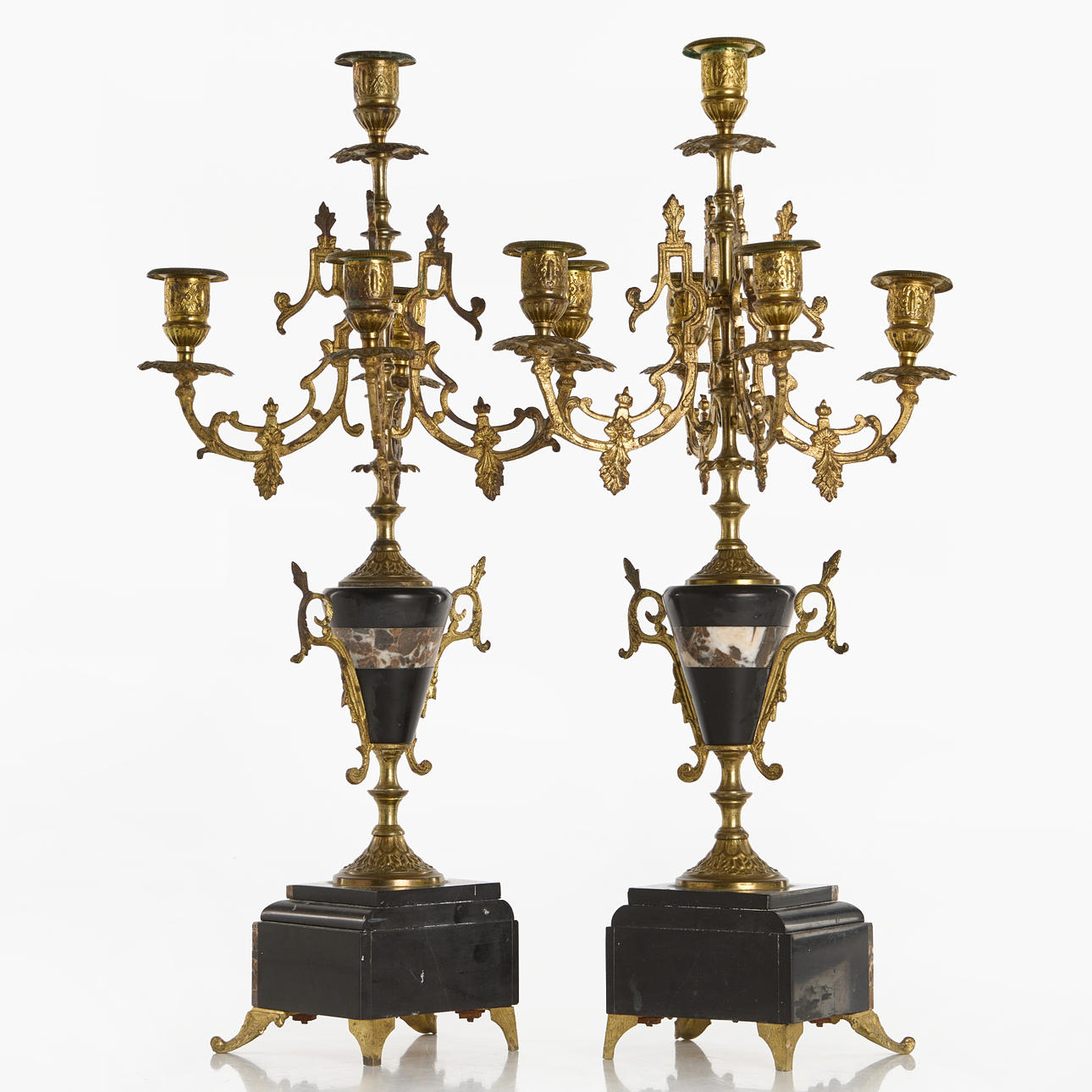 4232097. CANDELABRAS, 1 pair for 5 candles each, brass and stone.