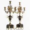 CANDELABRAS, 1 pair for 5 candles each, brass and stone.