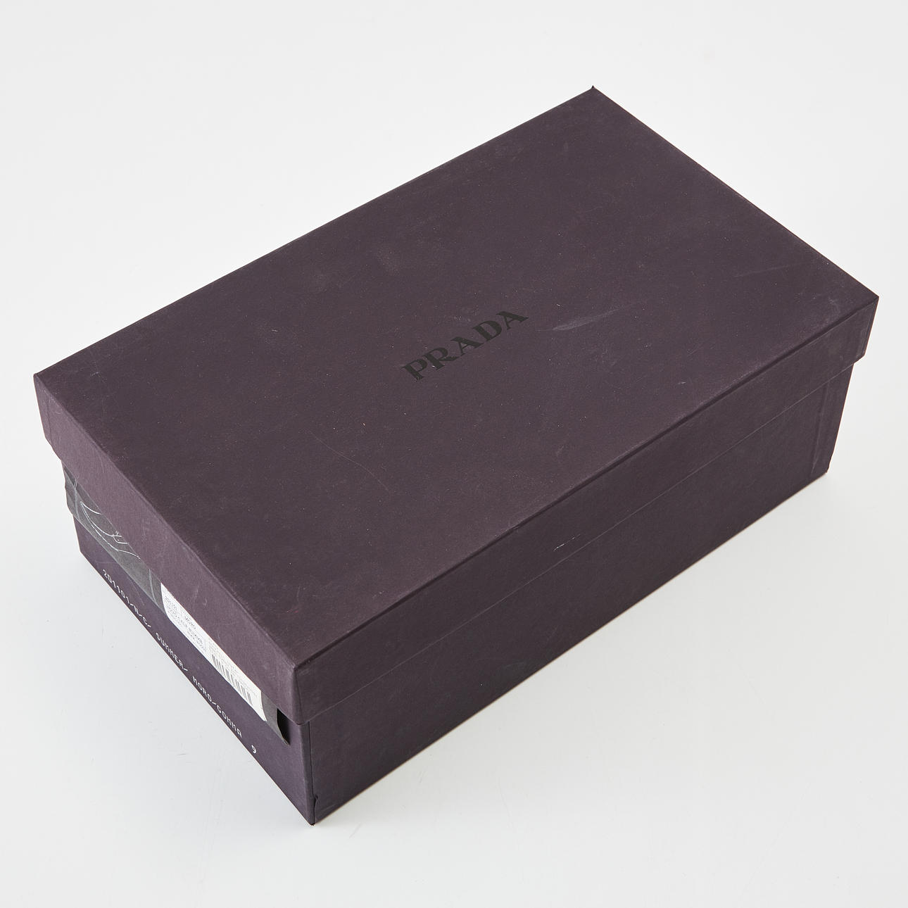 In brown leather, marked “Prada made in Italy”, included shoe box and shoe bag”, size 9.