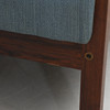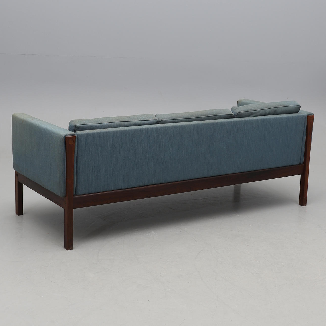 Veneered with jacaranda. Loose textile upholstered cushions in the seat and back. Length 192, depth 78, back height 72, seat height 39 cm.