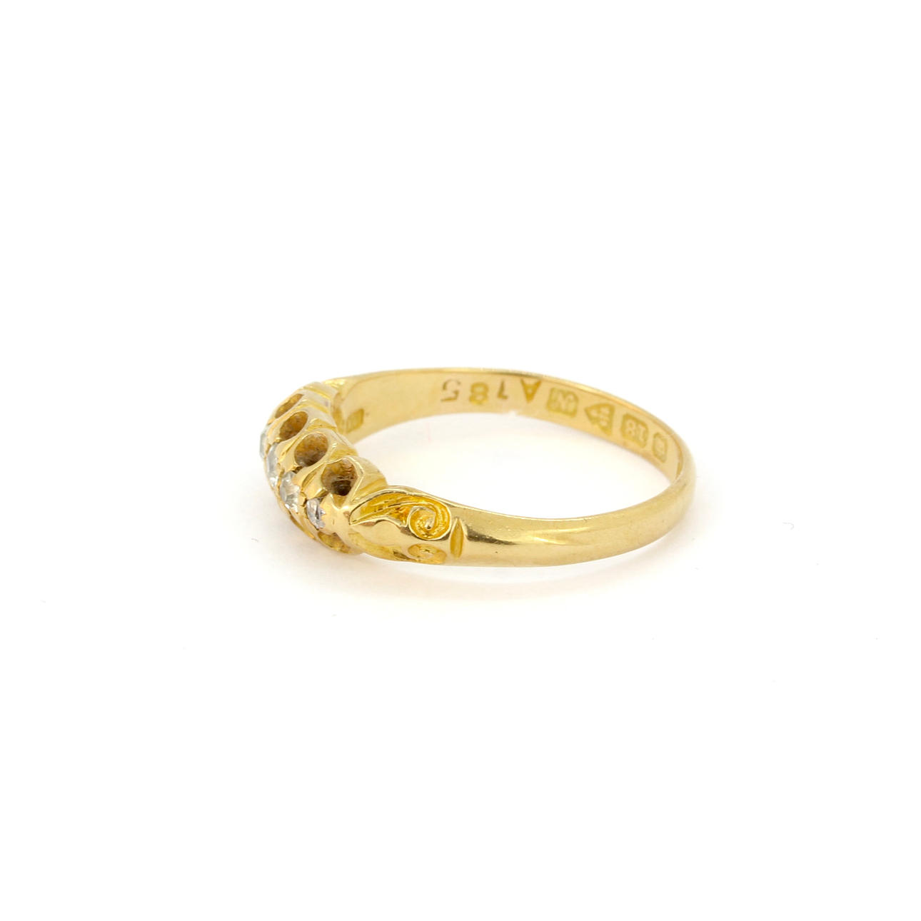 18ct gold antique diamond five stone ring. Size L, weight 3.1g.
