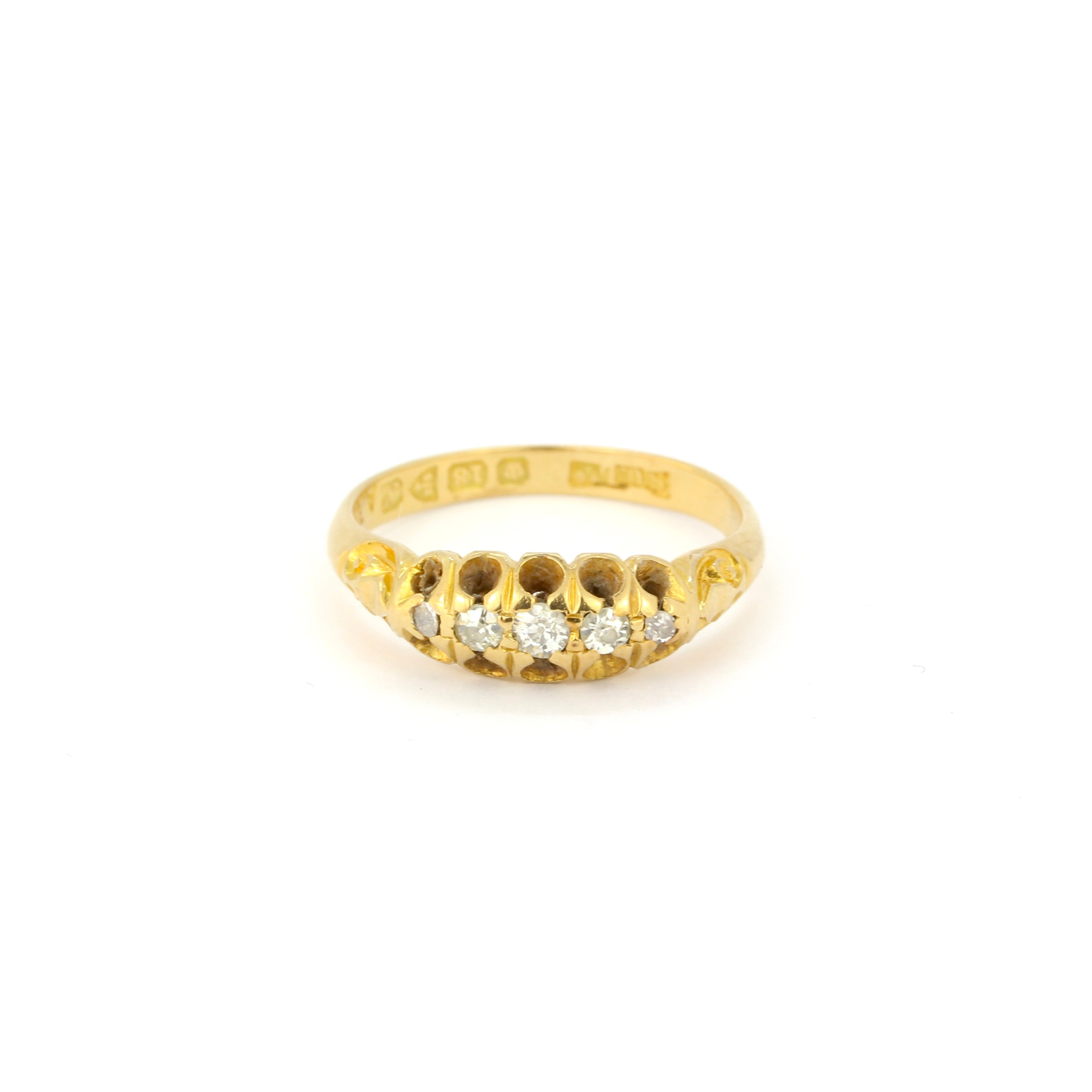 4233714. 18CT GOLD ANTIQUE DIAMOND FIVE STONE RING.