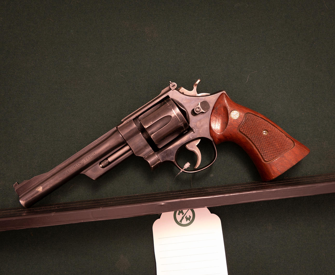 Revolver American Make Smith&Wesson Model 28-2 Highway Patrolman. Caliber 357Magnum. Additional No. 227069. Spout length 15cm. Adjustable sight. Modified barley. Piston sides made of wood.