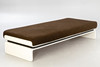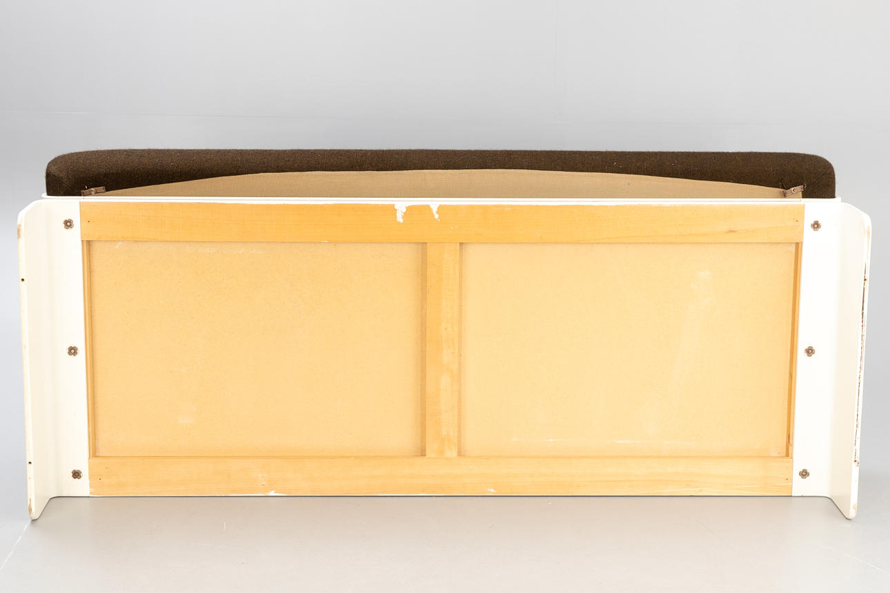 White lacquered wood Cushions with brown wool fabric.