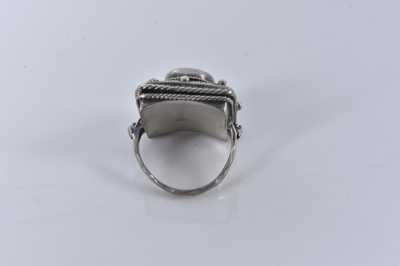 RING, with photo hide, and purple stone, silver.