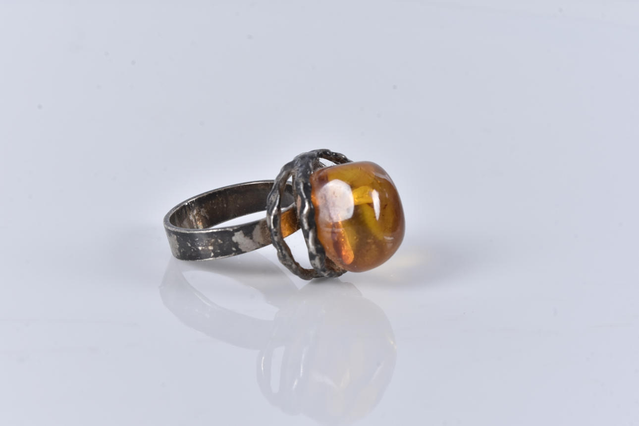 4236449. RING, with amber, sterling silver.