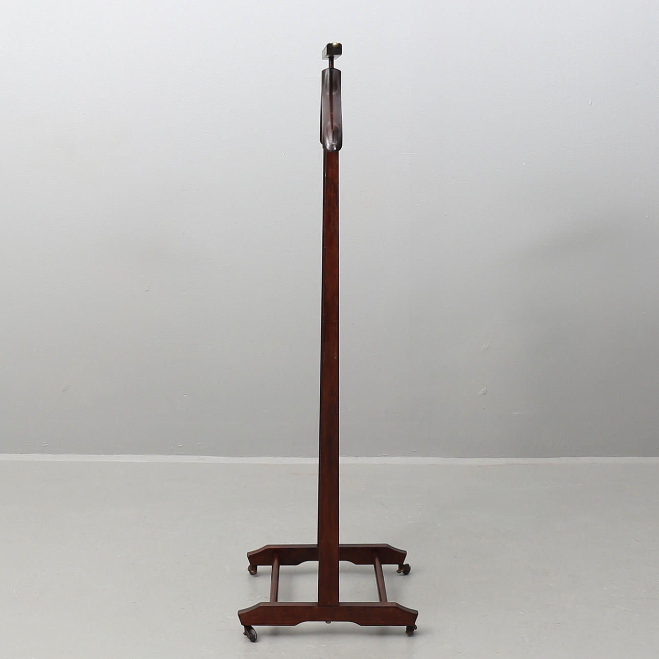 Made of dark stained hardwood with minor details in brass. Height approx. 105 cm, width 45 cm.