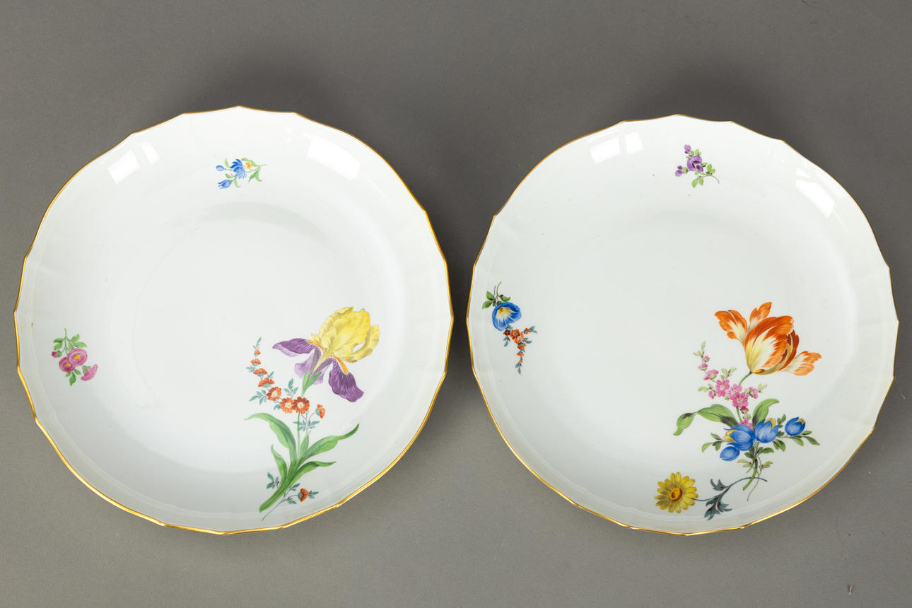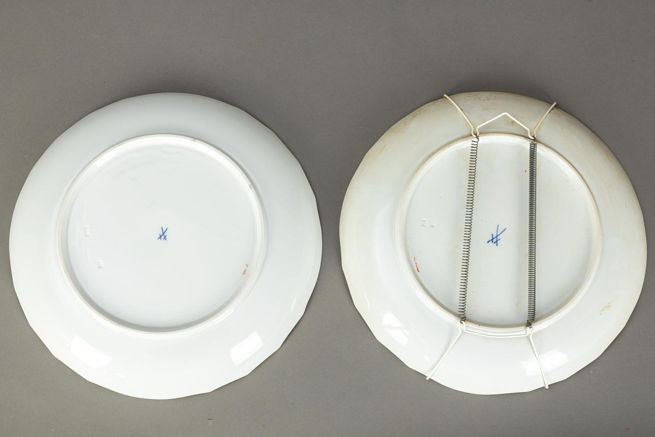 White porcelain with coloured glaze painting and relief decoration. In various versions. Underglaze blue sword mark.