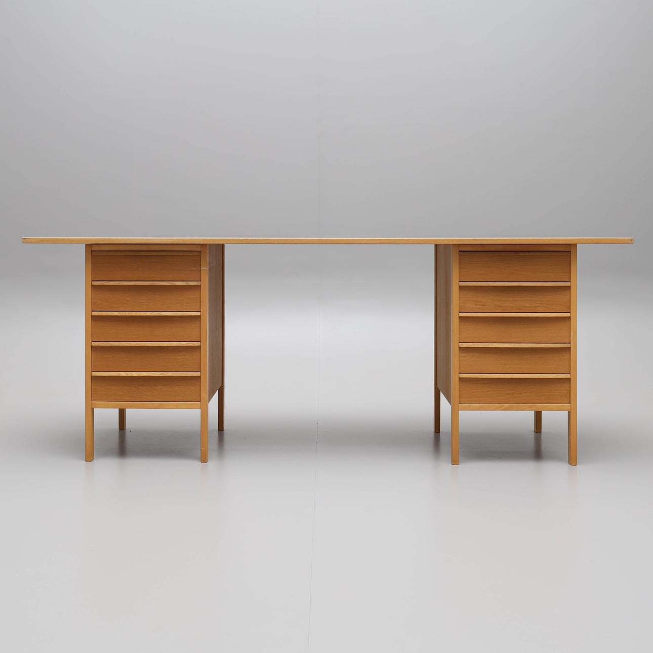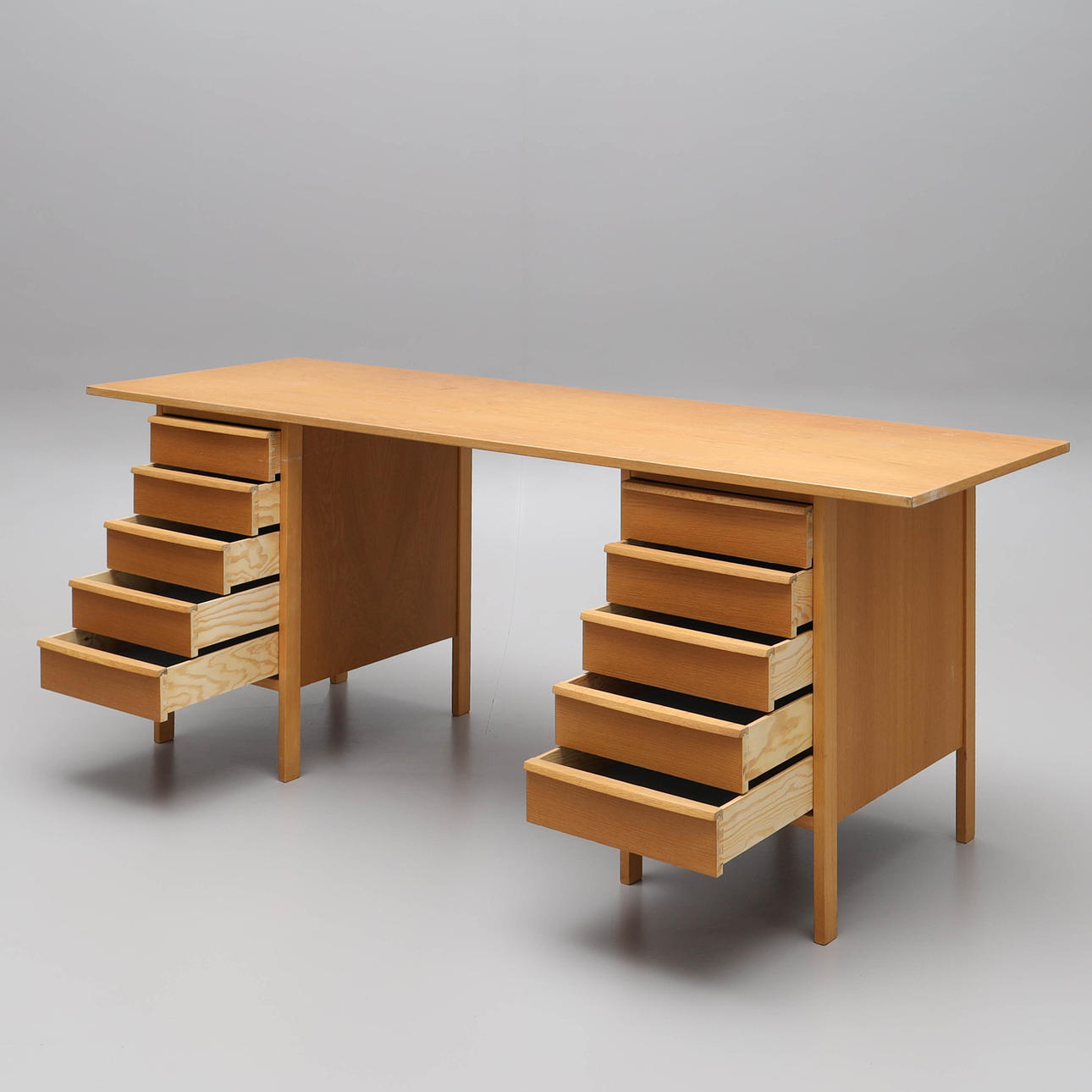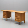 Desk in oak veneer, 3 pieces. Drawers.