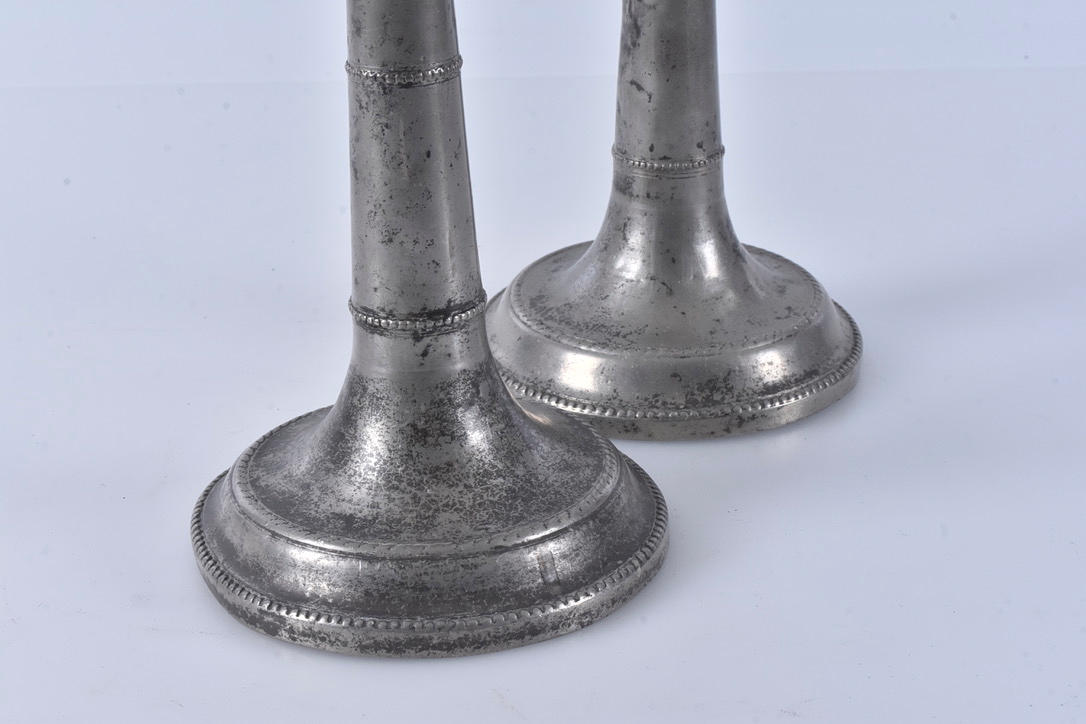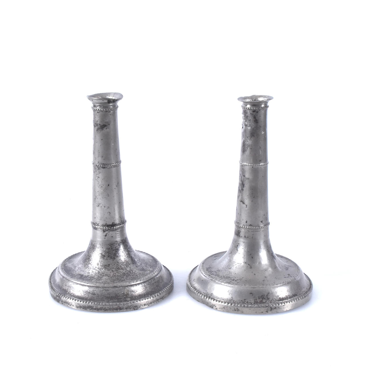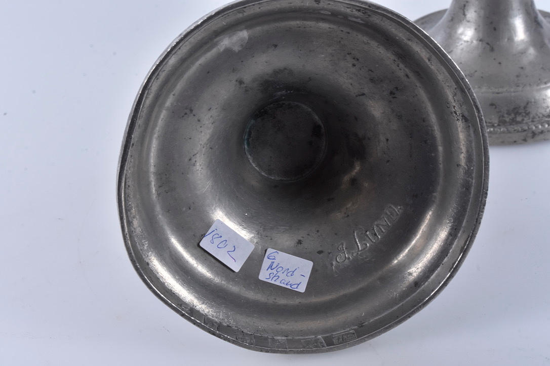 4238548. A pair of tin candlesticks, Lund, 1802.