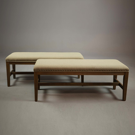 Stamped 'Robin Nance St. Ives' the the underside of the seats, the circular dish top above four turned legs, 45.5cm height, 33cm diameter of seat. (2).