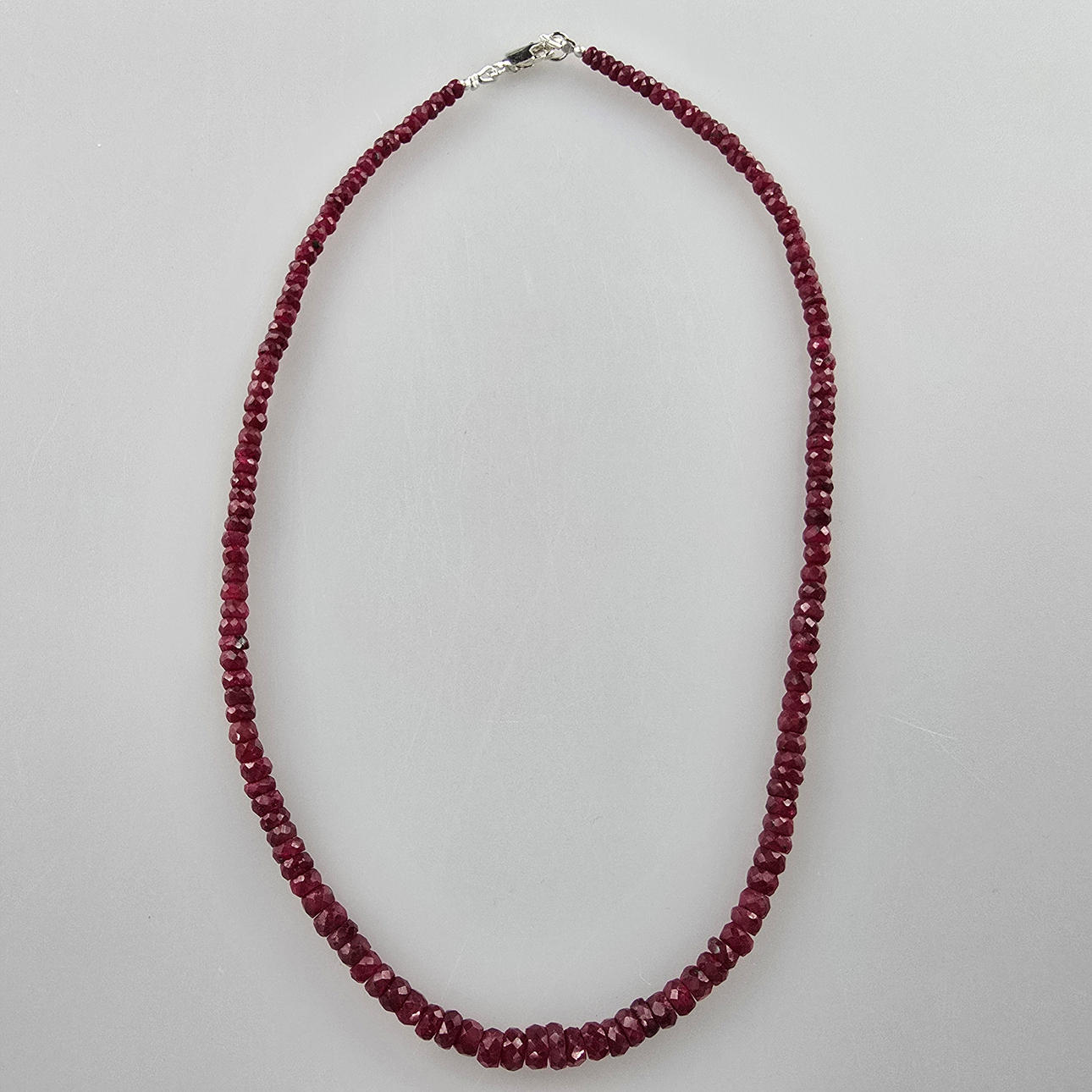 - Ruby single strand necklace, 925 silver.