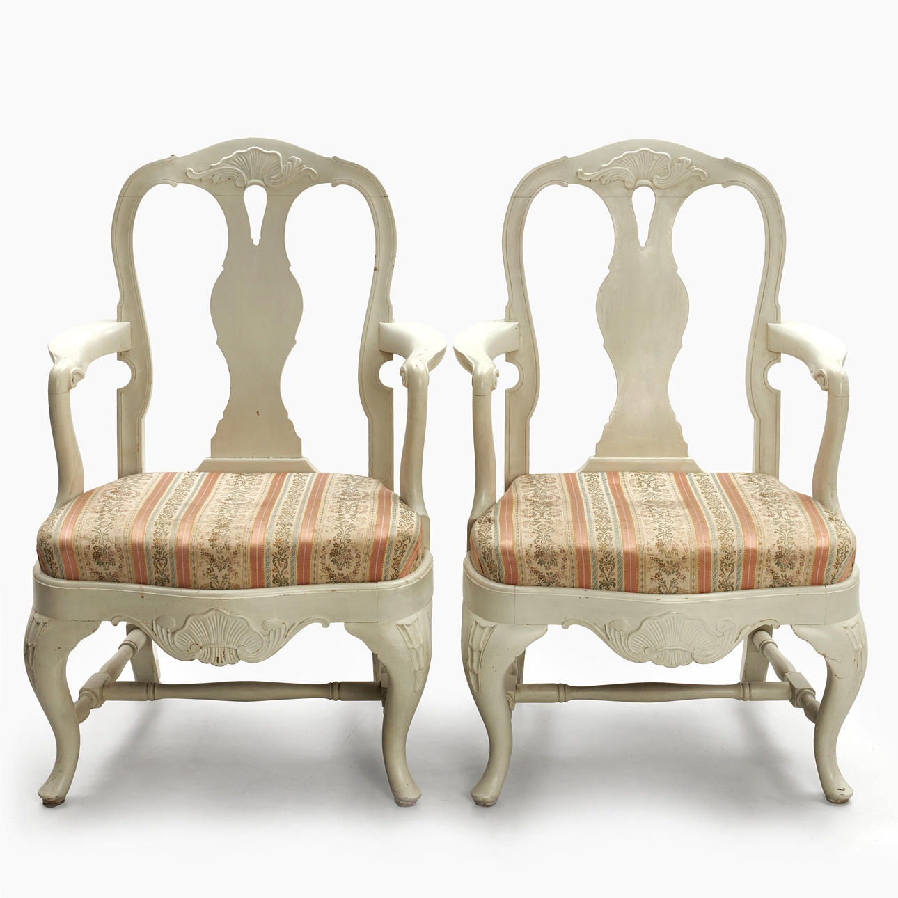 4243872. Armchairs, 1 pair, Rococo style, 20th century, painted white.