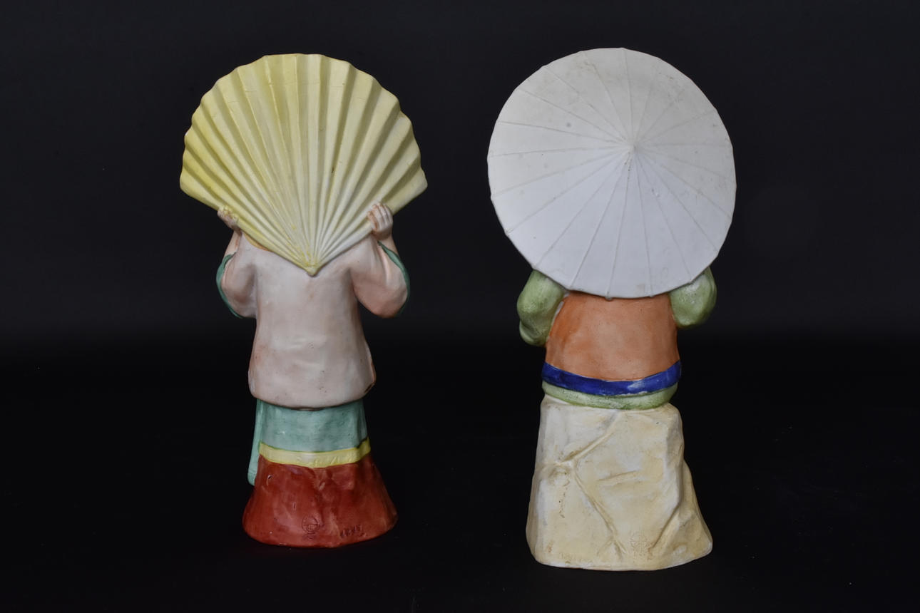 4246573. 2 painted bisque porcelain figurines, Heubach, Germany.