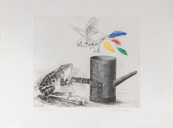 P.P, signed and dated 89, motif size approx. 20x25 cm, leaf dimensions approx 40x54 cm.