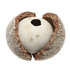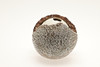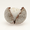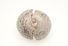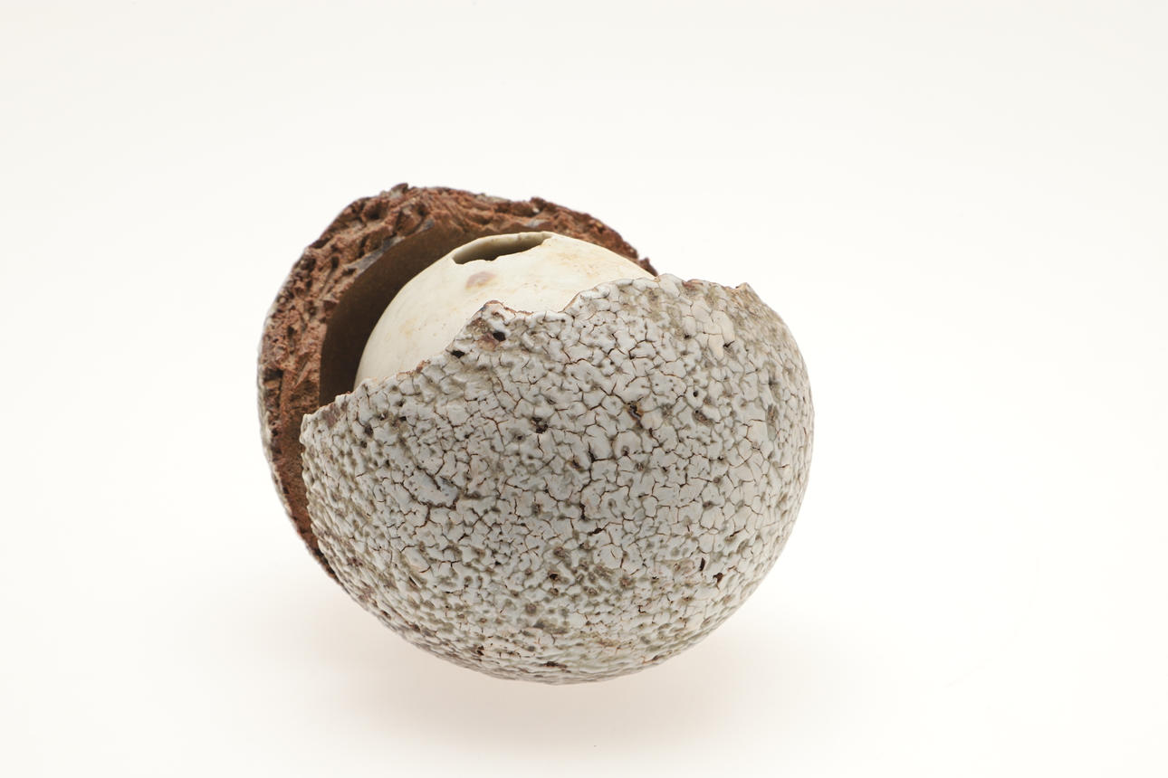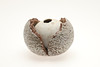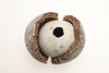 A stoneware and porcelain seed pod vessel with open central section, signed to the base 'AW'. 8cms high, 10cms across.