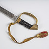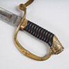 Brass bracket with Nicholas II's monogram, on inscription on the blade: From mother and sister, may God protect you. Single-edged blade, bowl grinding and etched decor. Wooden grips. Leather-clad tub with leash ring and brass drop shoe. Length 97,5 cm, of which blade 81,5 cm.