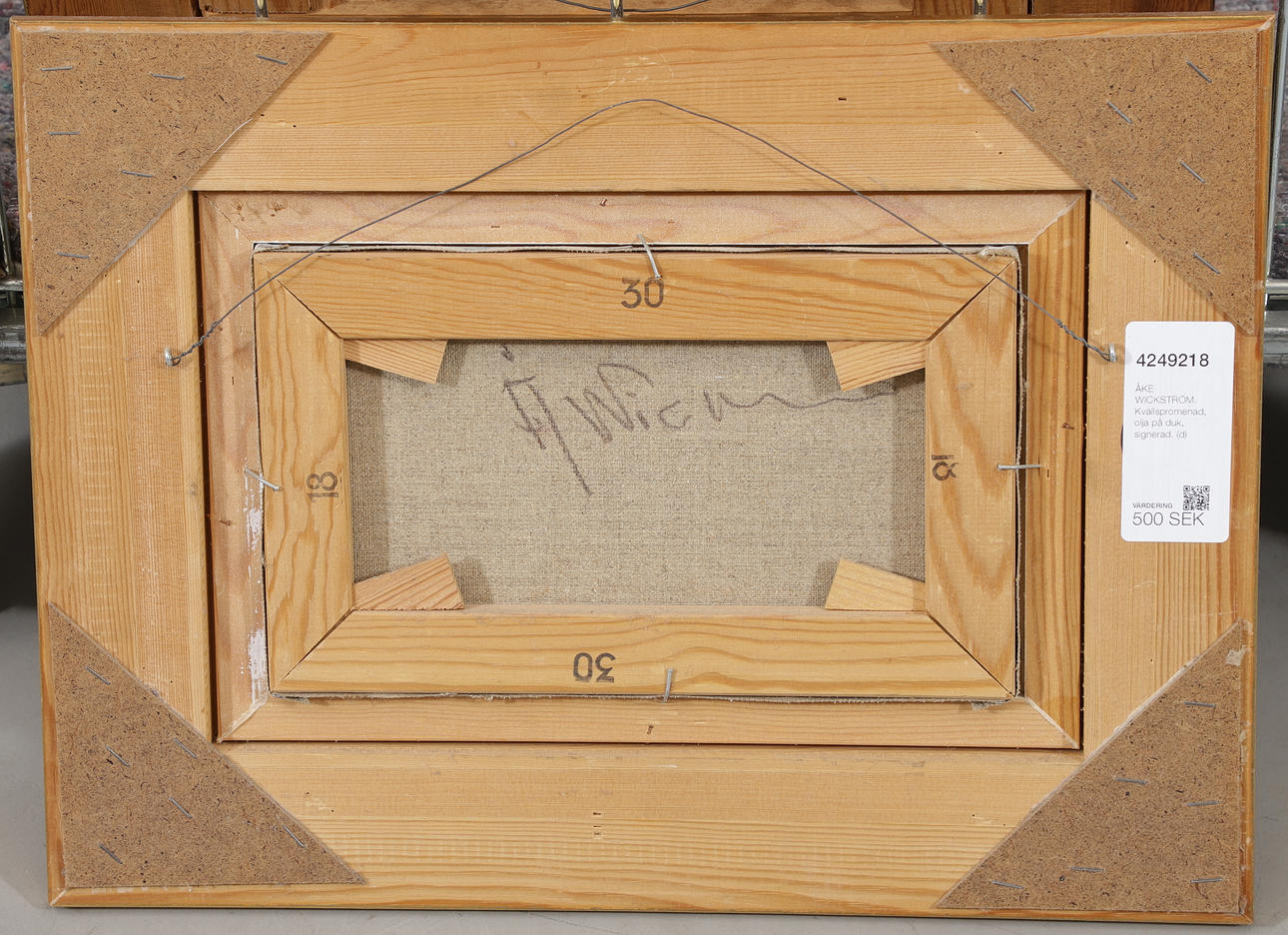Dimensions canvas 18.5x30 cm, dimensions with frame 36.5x49 cm.