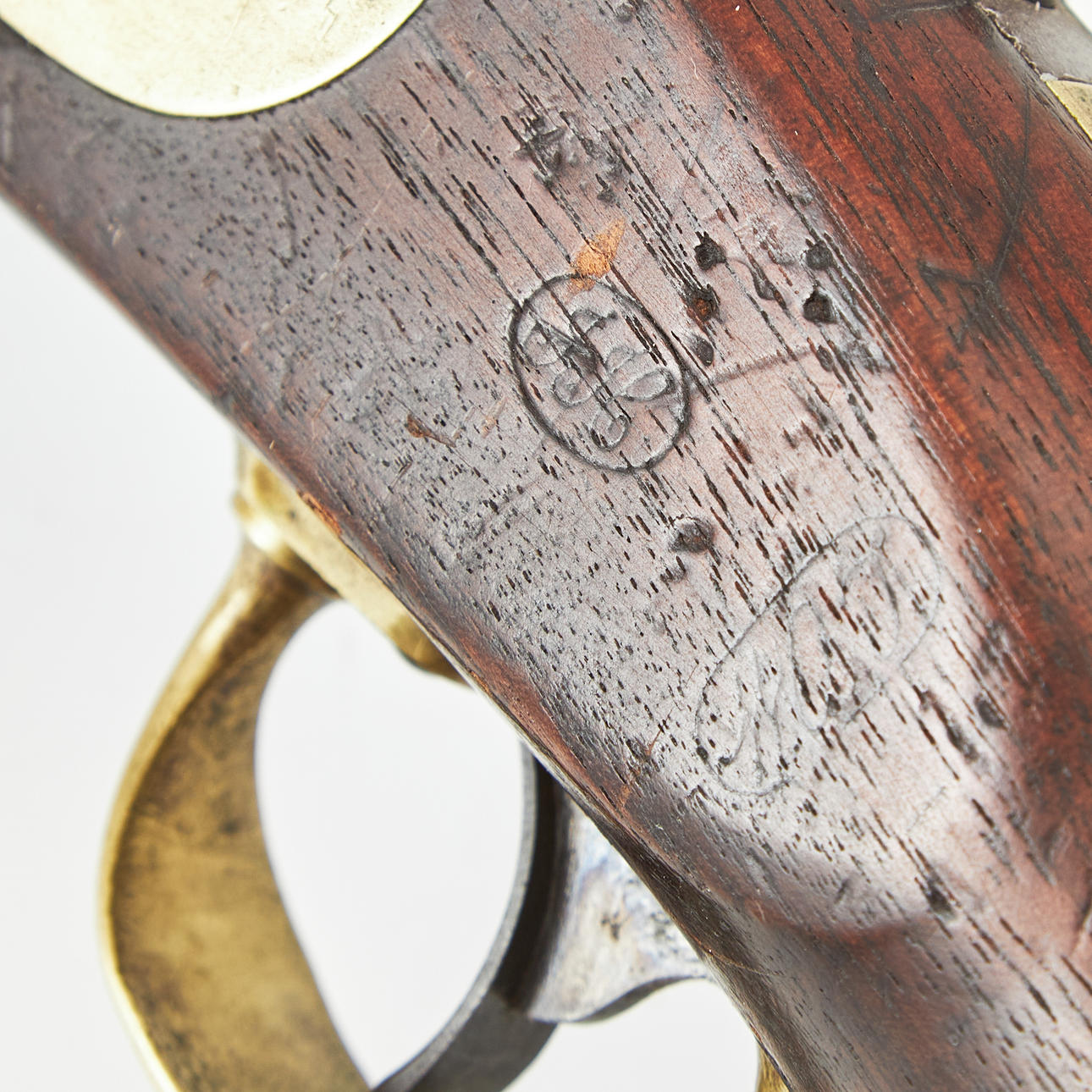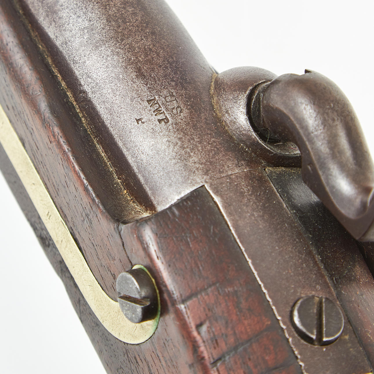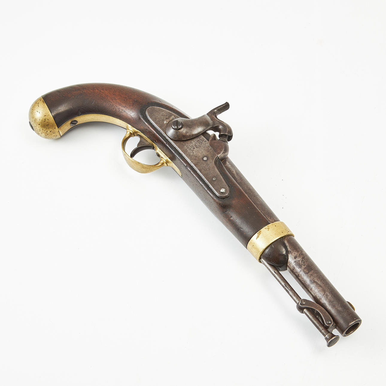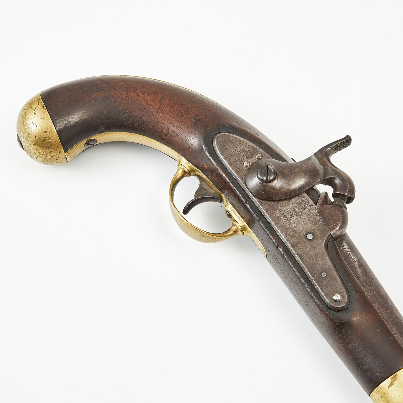 Lock plate marked USH. ASTON, and MiddTN CONN 1847, loading stock in hank, brass fittings, inspection stamp on the log, length 36 cm.