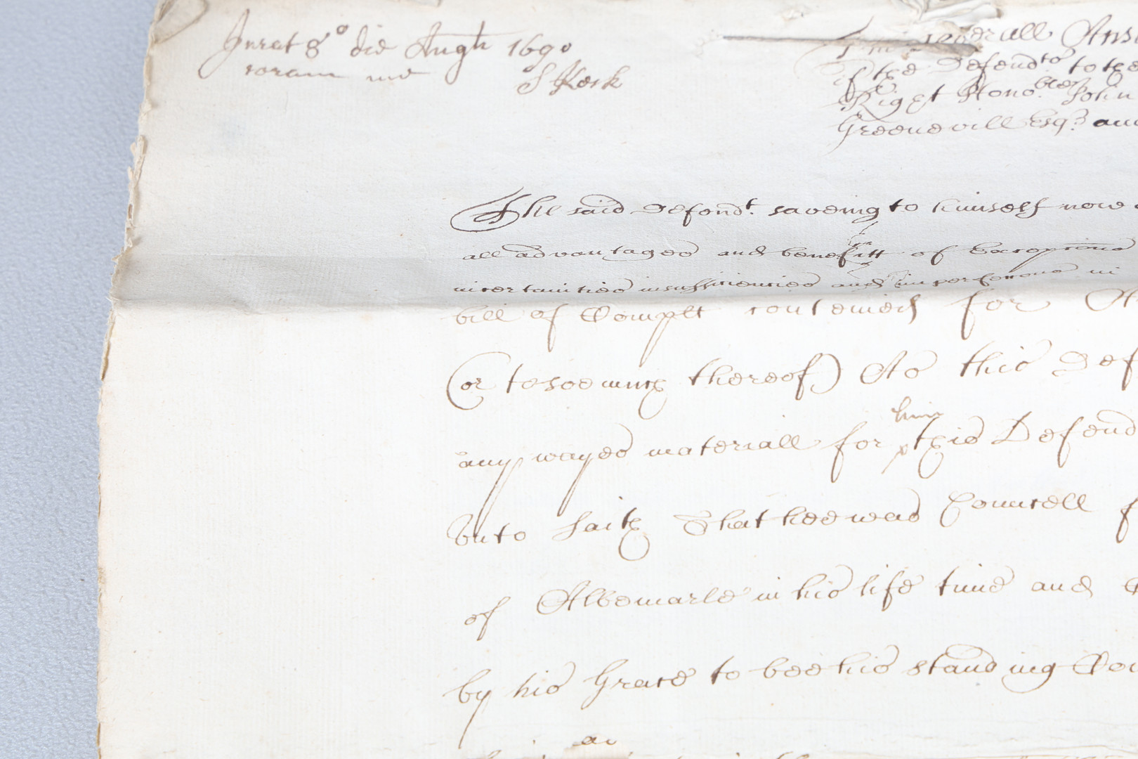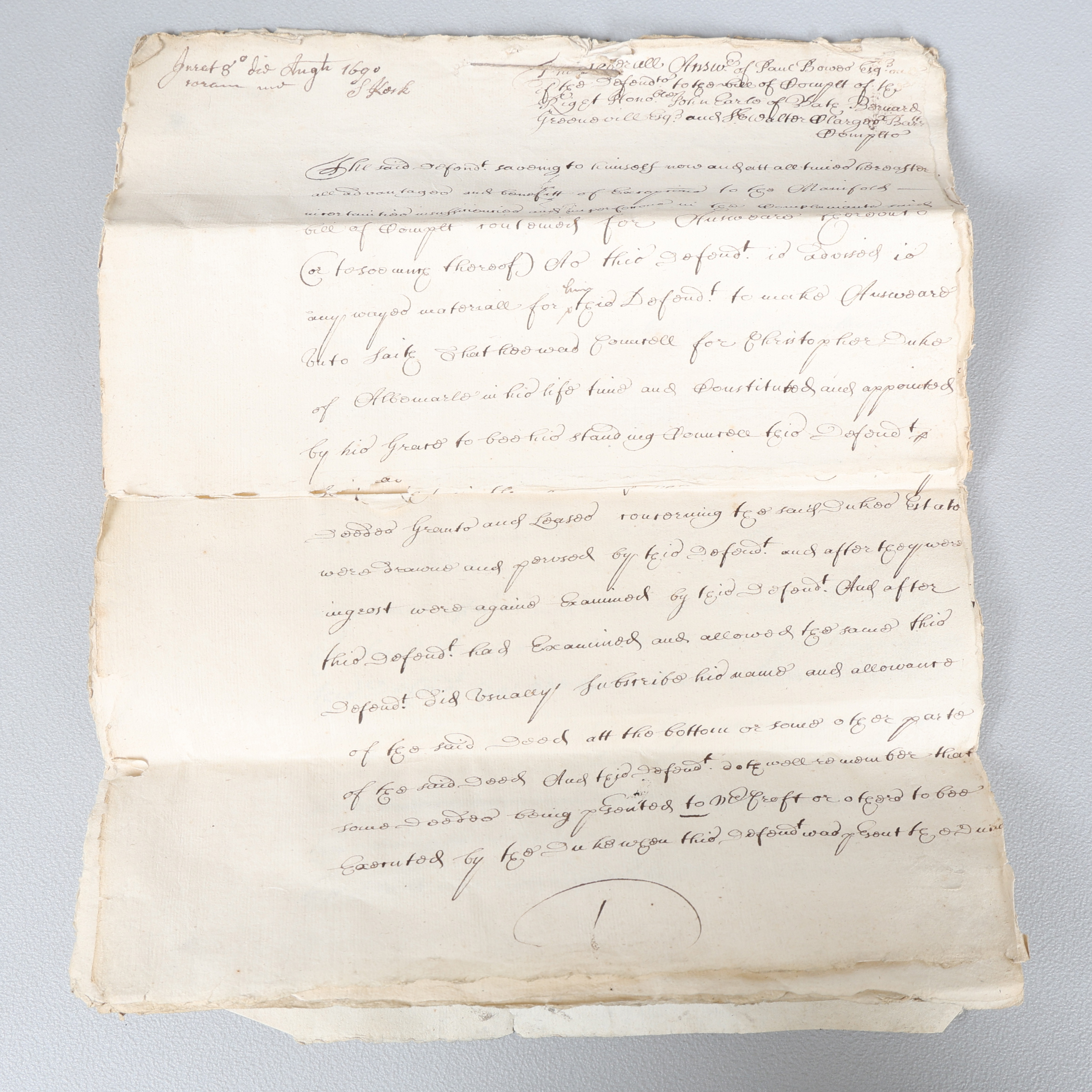 4251186. WILLIAM AND MARY PERIOD HAND WRITTEN DOCUMENT, DATED 1690.