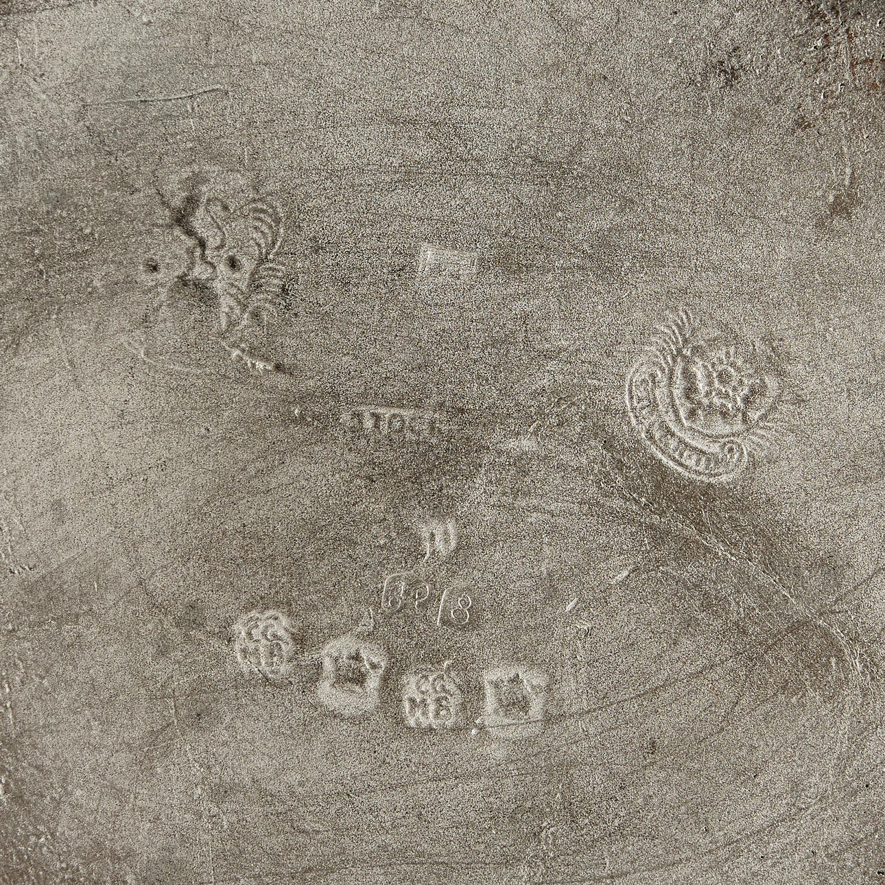 PLATES, 9 pcs, pewter, marked Orrklou, rococo style.