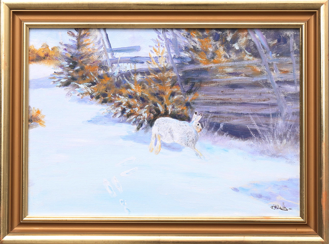 ROY BLADH. “Snow hare”. Oil on canvas, signed.