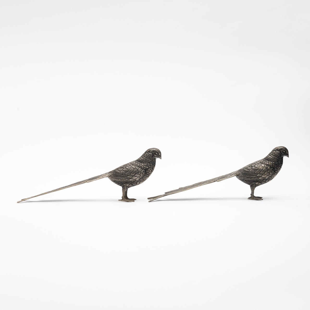 4252741. A pair of light metal table decorations, Peacocks.