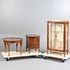 4254086. A DISPLAY CABINET, COFFEE TABLE AND SEWING BOX. (3).