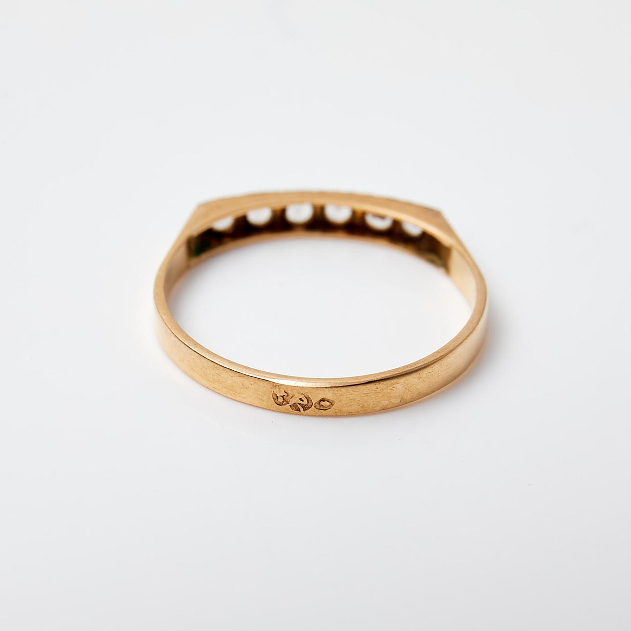 4254337. RING, 18k gold, 6 white gemstones, foreign stamps.