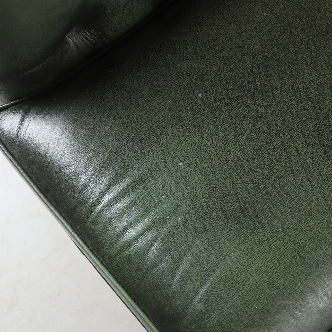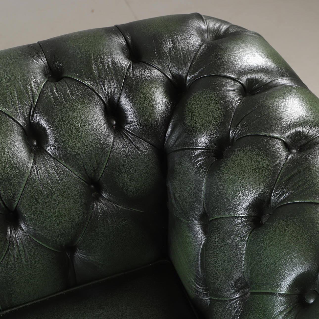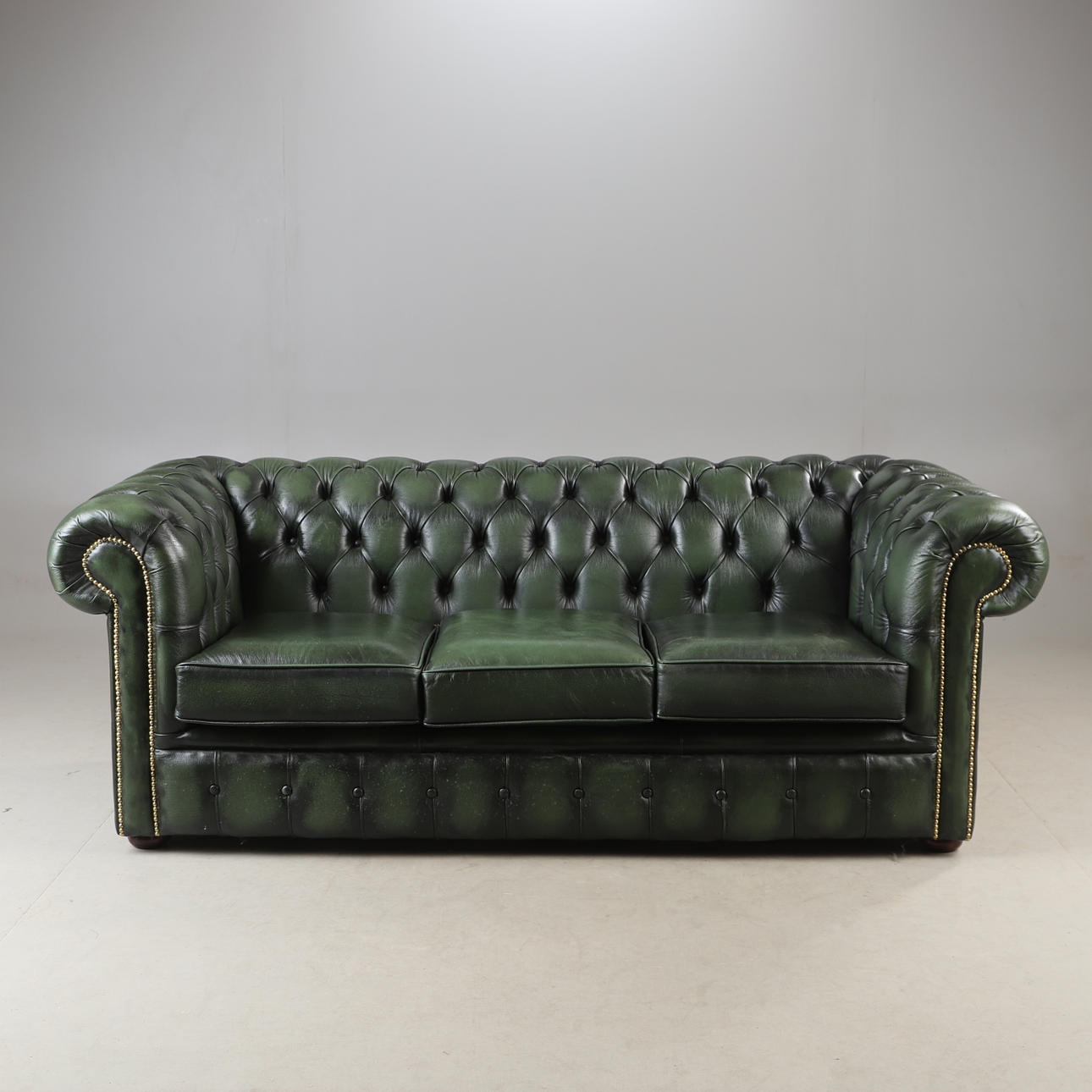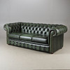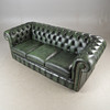4254856. SOFA, 3-seater green leather, Chesterfield model.