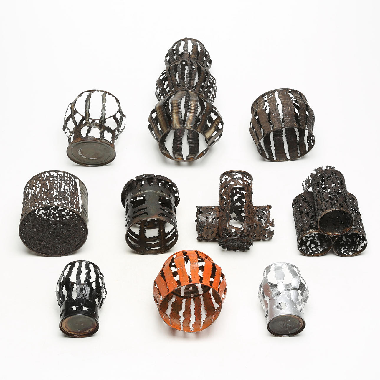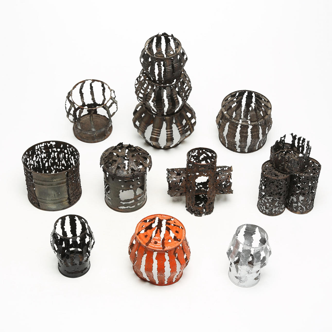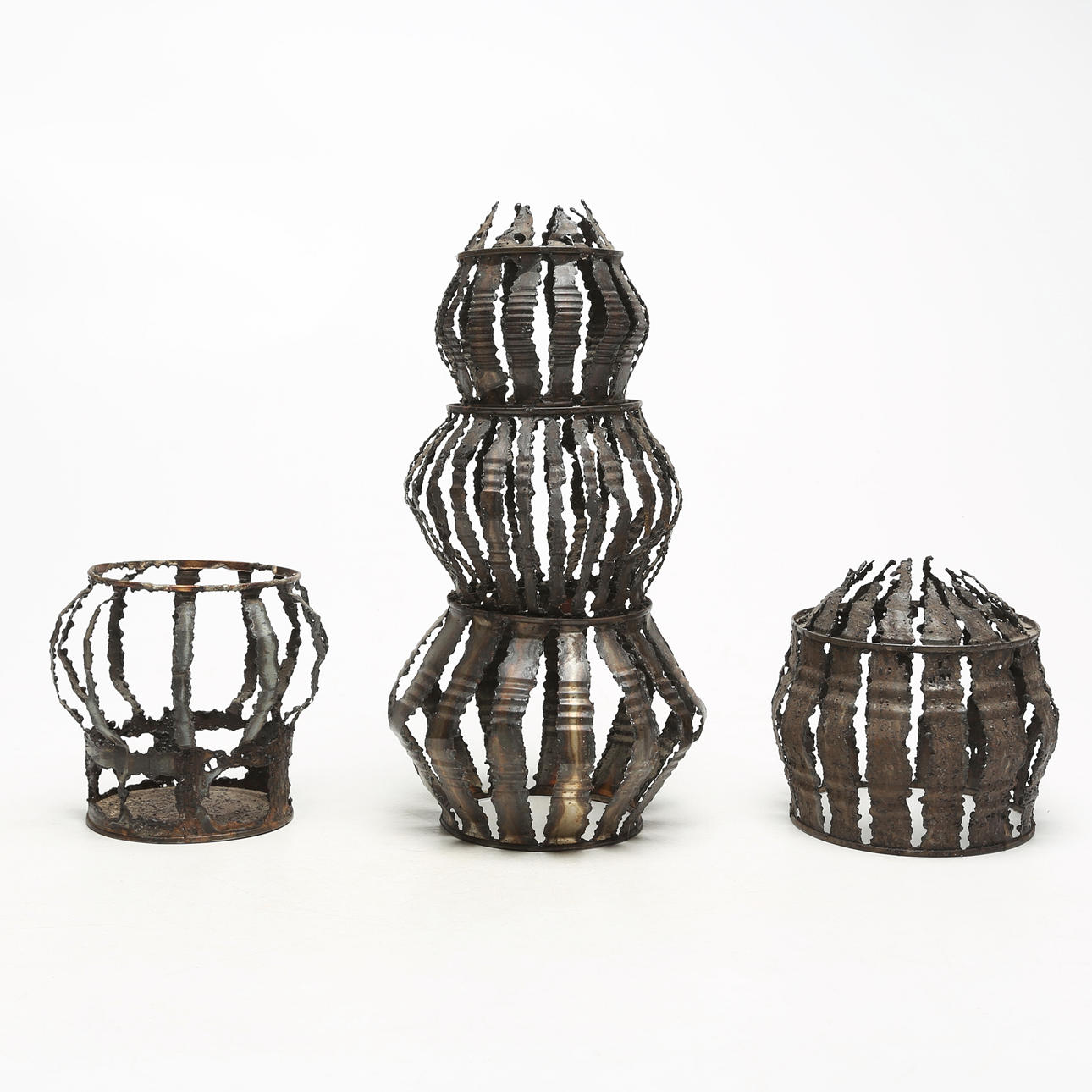 A set of 9 metal lanterns.