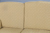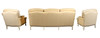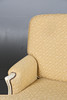 Consisting of three seat settee and two armchairs, with yellow stylised foliate upholstery, raised on white foliate carved scrolled legs, the settee 190cm wide, 84cm high, 90cm deep approx. (3).