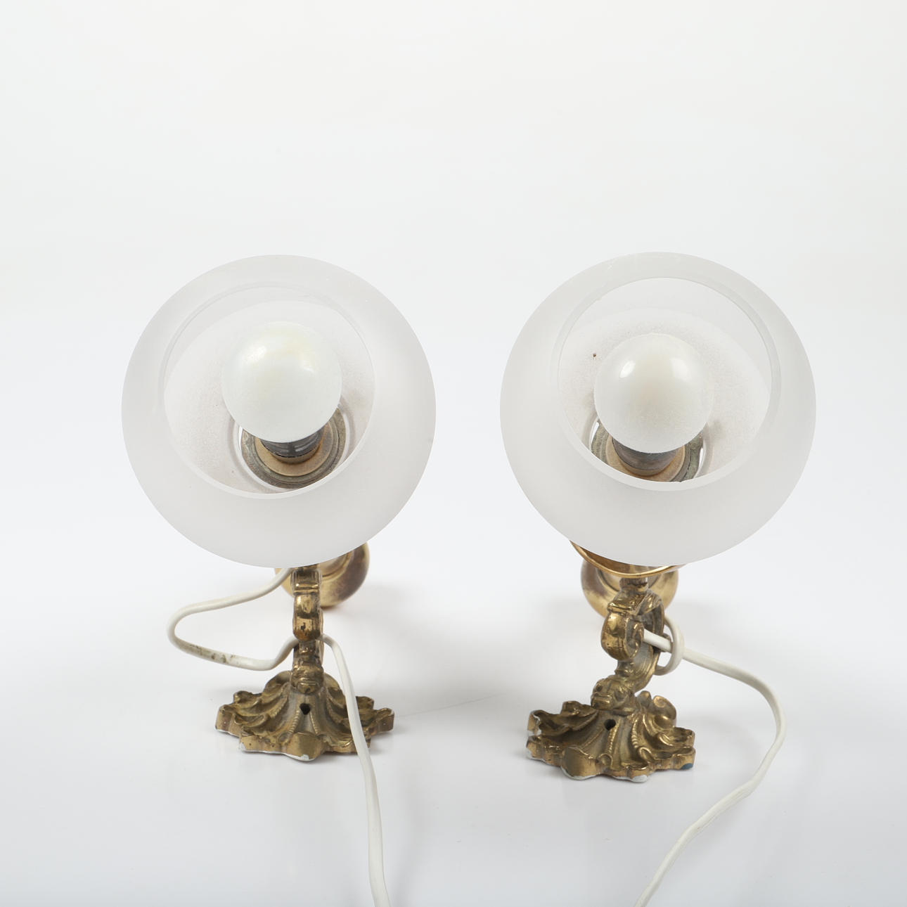 4259657. WALL LAMPS, 1 pair, brass with glass cups.