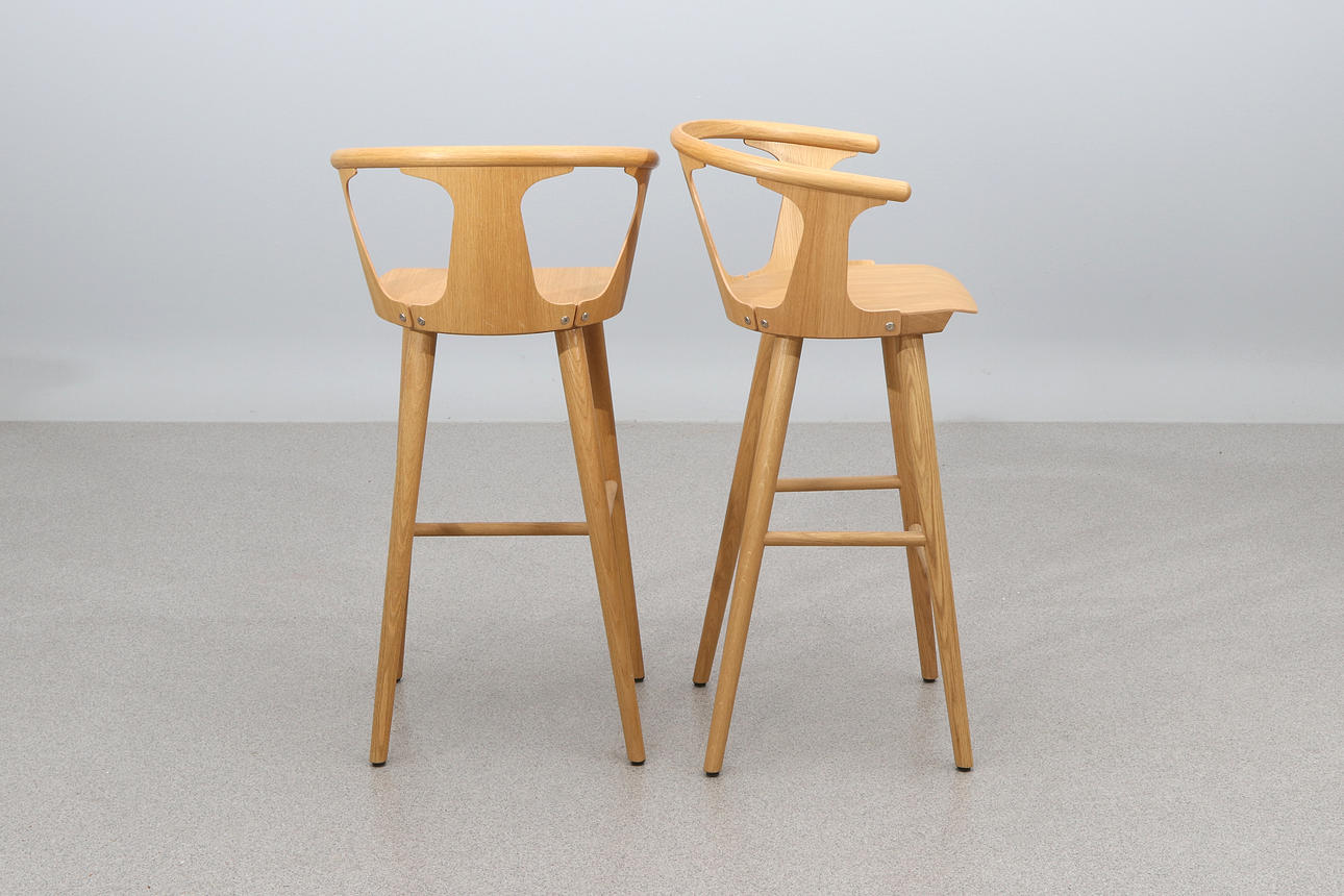 SAMI KALLIO, FOUR BARSTOOLS “IN BETWEEN BARSTOOL”. Light oak veneer.