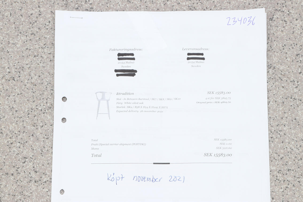 Receipt from &tradition included, purchase price 15583 SEK 2021.