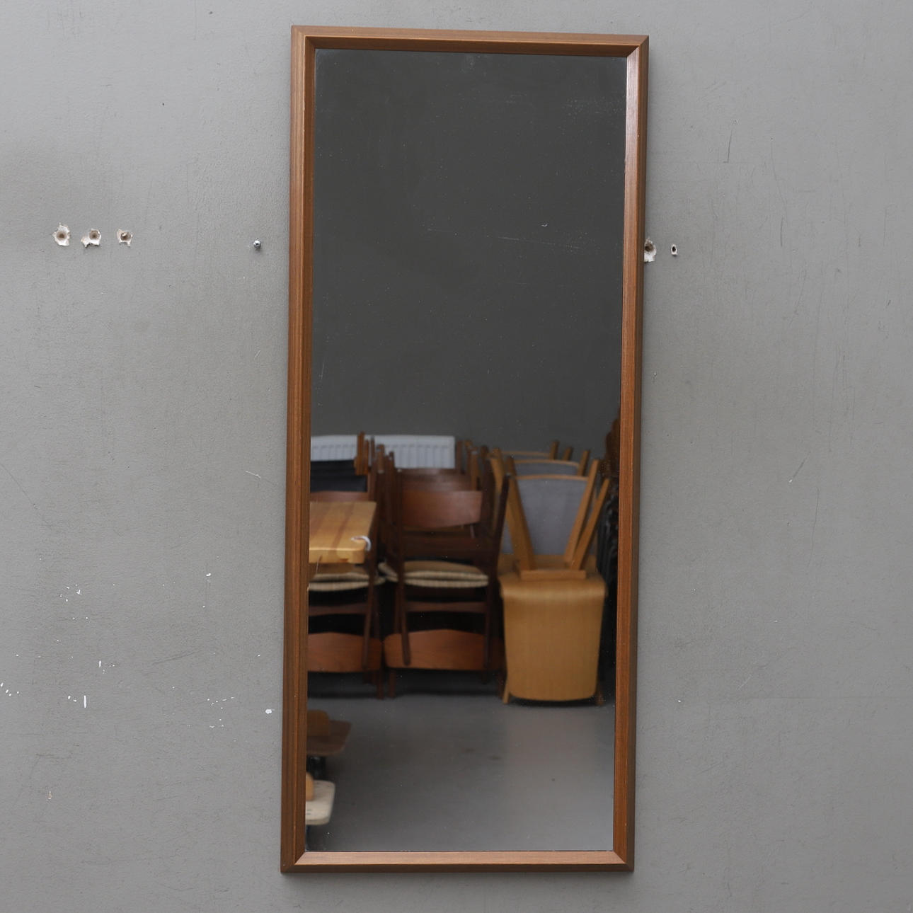 A 20th century teak veneer mirror.