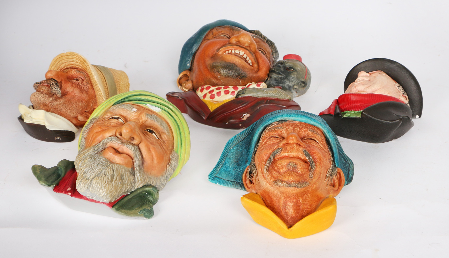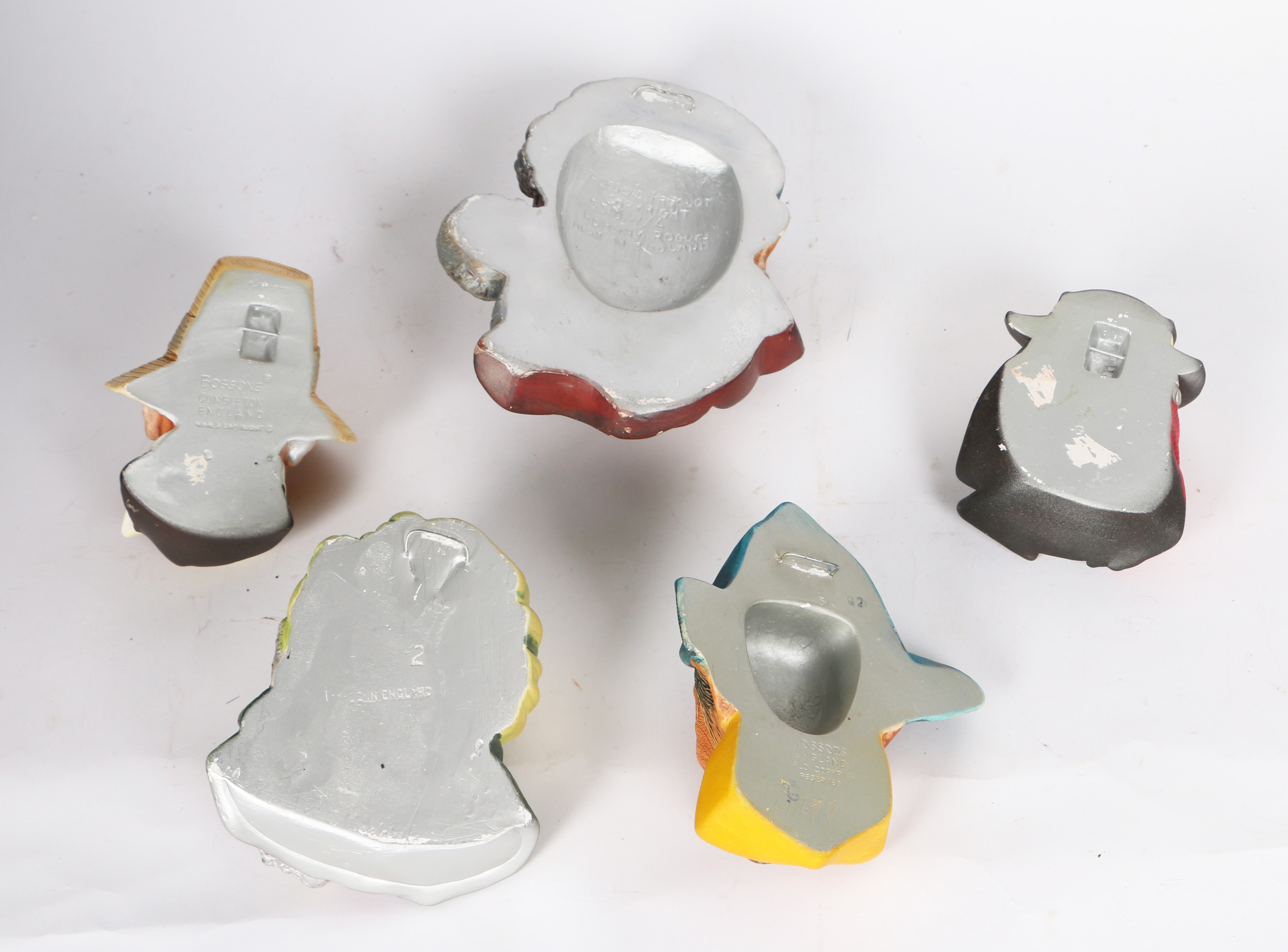 4261575. FIVE HAND PAINTED PLASTER WALL RELIEFS INCLUDING EXAMPLES BY BOSSONS (5).